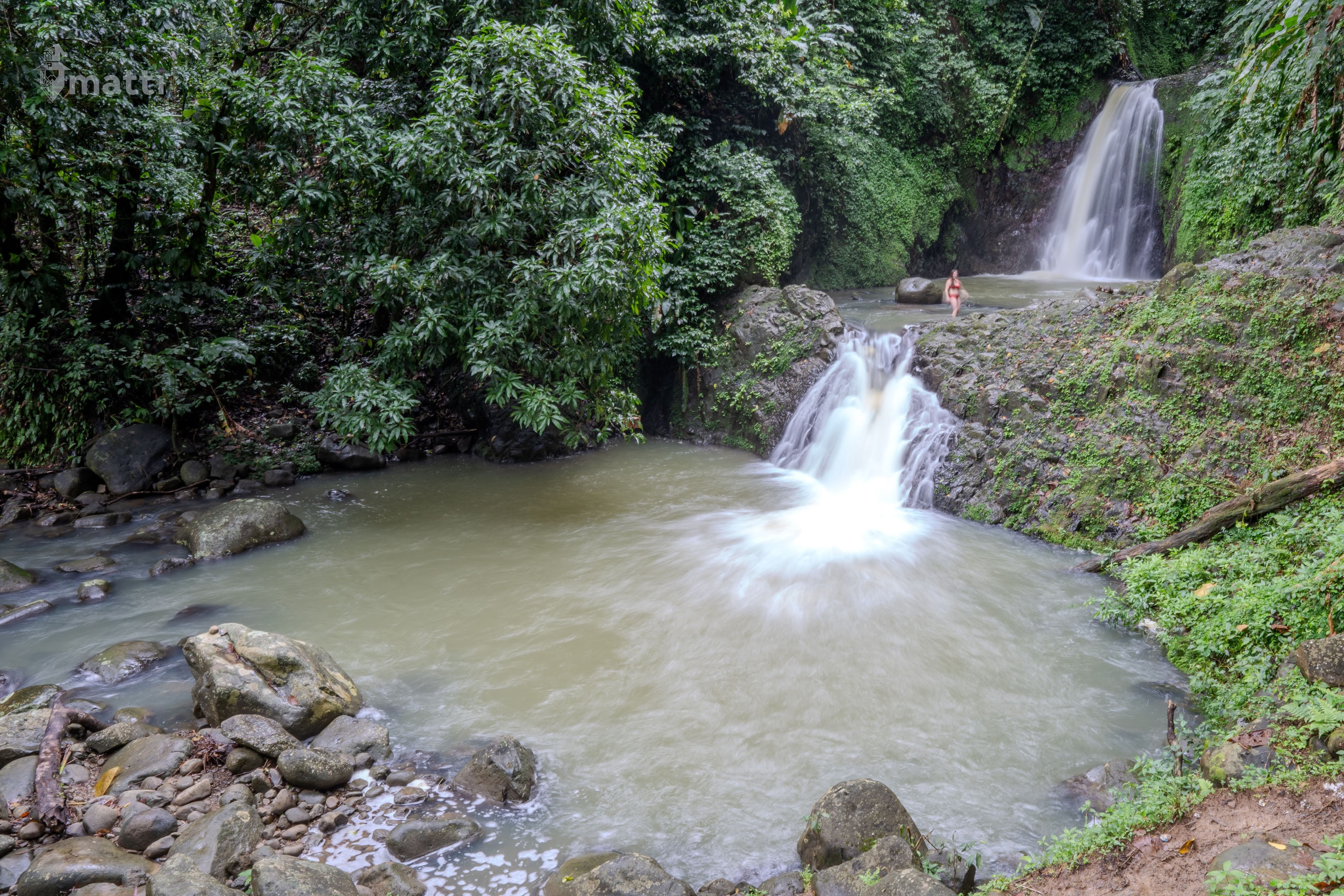 As we made it to the end we came out to a glorious stream and double waterfall. To get to the waterfall we had to slowly cross the steam… water came up to knee length but also helped wash off the dirt I had collected on me.