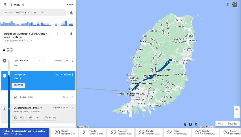It was nice to sit for a second in a stationary position (relatively) but when I got up I noticed that apparently I had bruised my tailbone somewhere. Maybe the car ride up and down, or when I fell, or maybe I hit a rock in the inner tube and didn’t notice…but sitting and standing is a PAIN now 😅. Took one more picture of Grenada in the sun and headed back to my stateroom about an hour before we were set to take off.