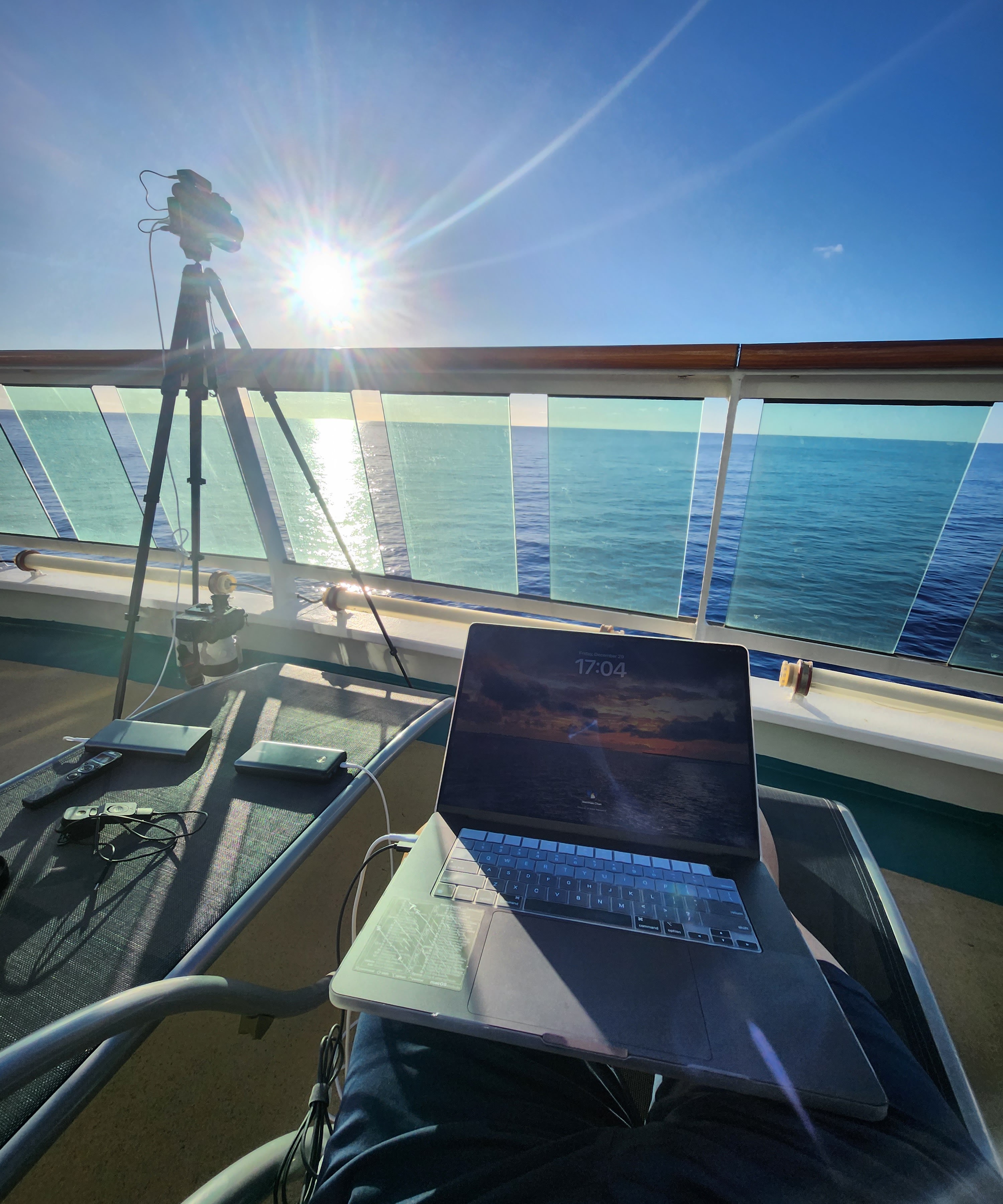 Super nice day out on deck as we cruise towards Rio. Played with an intervalometer and getting ready for fireworks in a couple days. Pretty chill day.