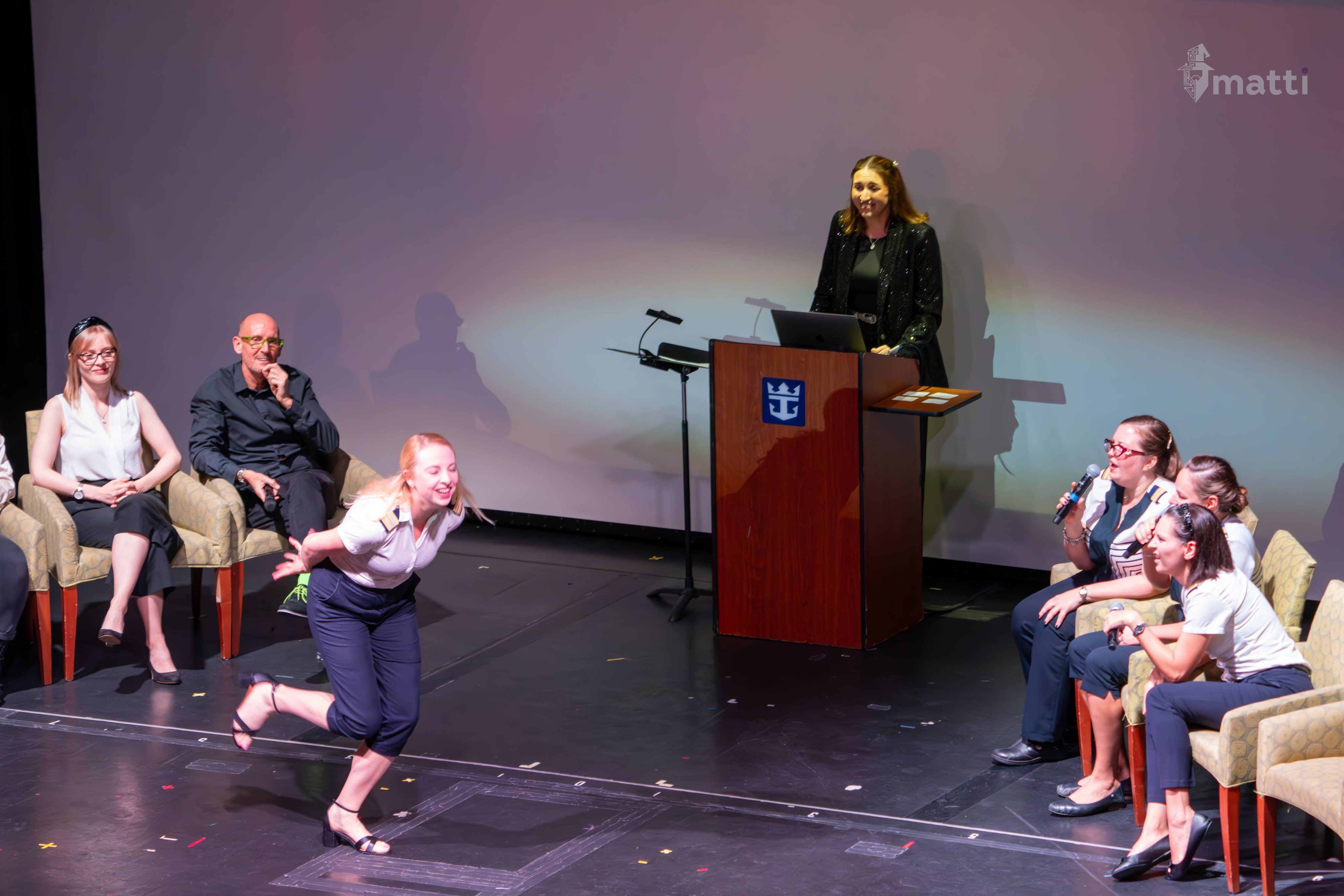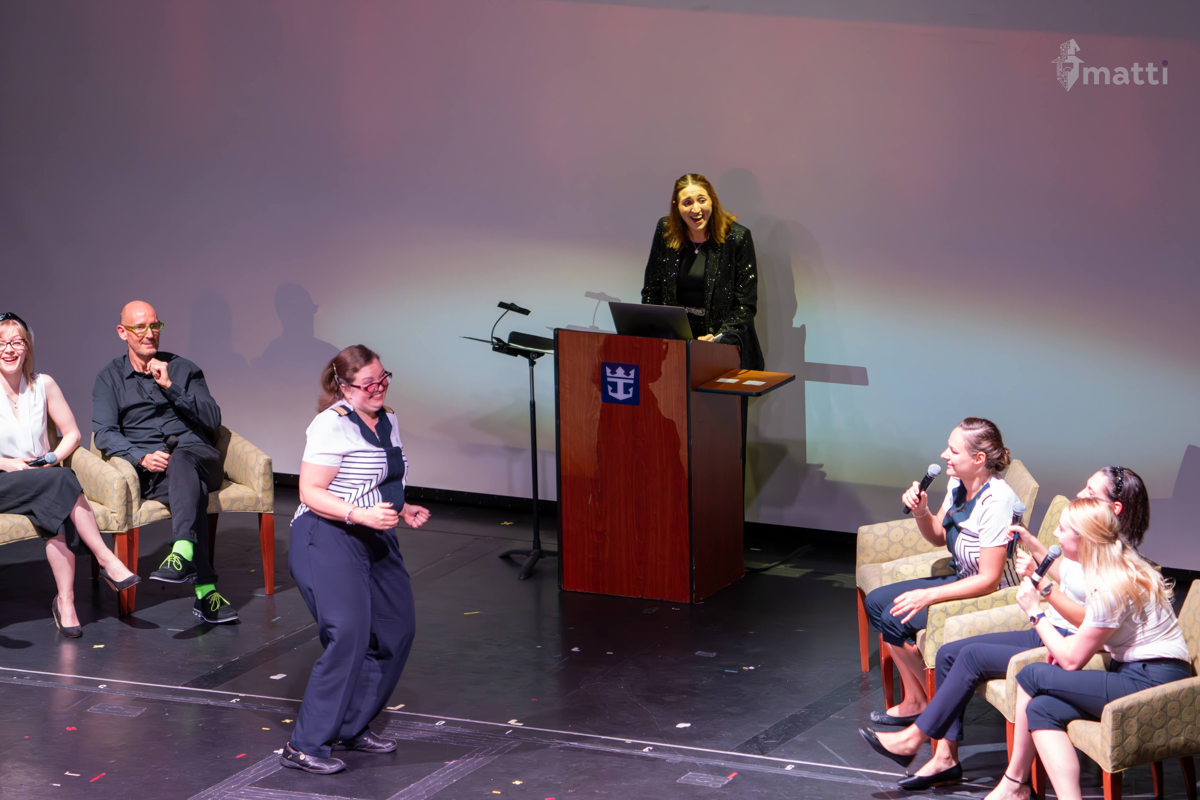Walked by the theater to the crew game show, and had a blast. Always hilarious to watch other people play charades (and not having to do it yourself). Crew is awesome, hilarious, and seemed to genuinely enjoy themselves as well, and some hilarious inside jokes now within the ship.