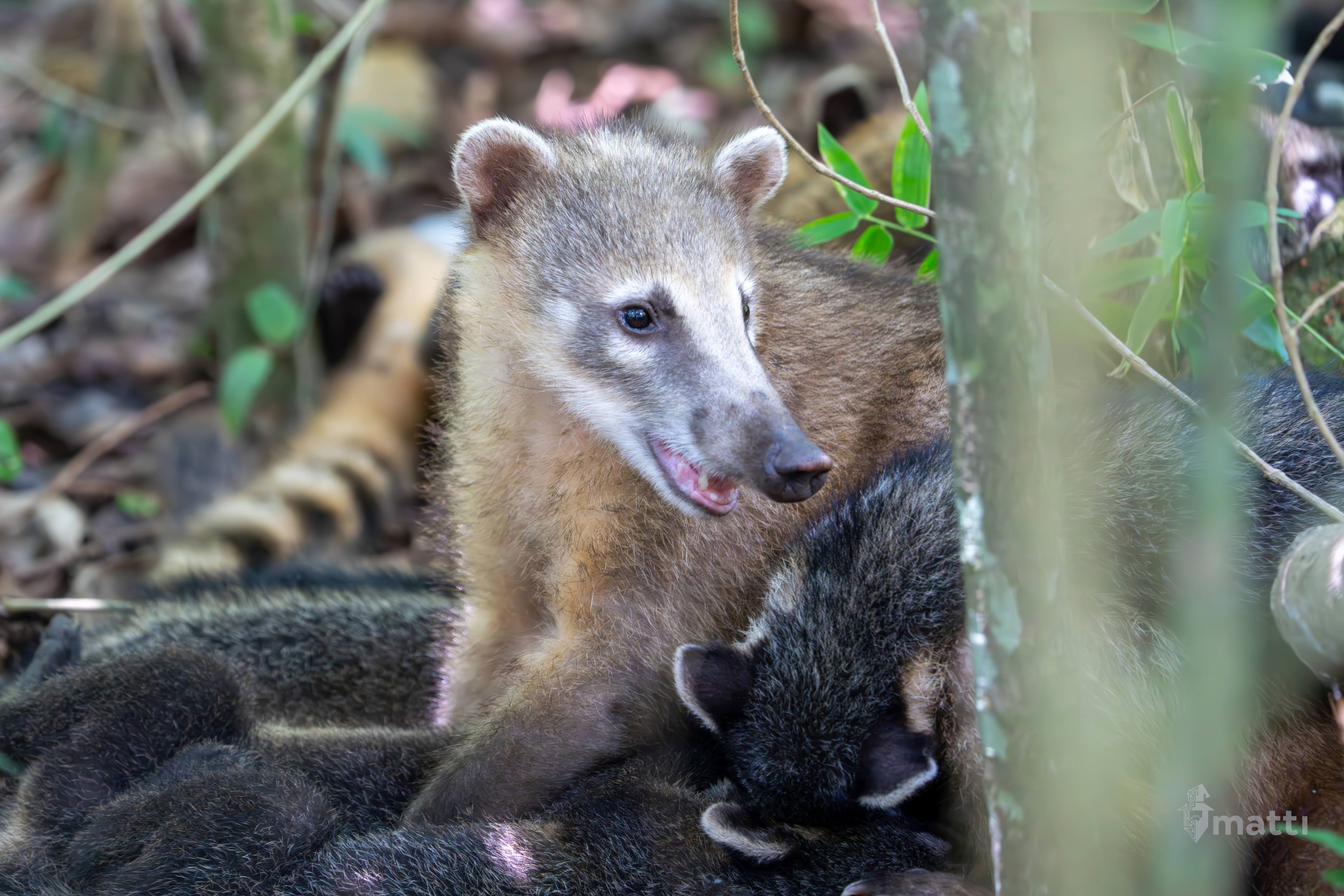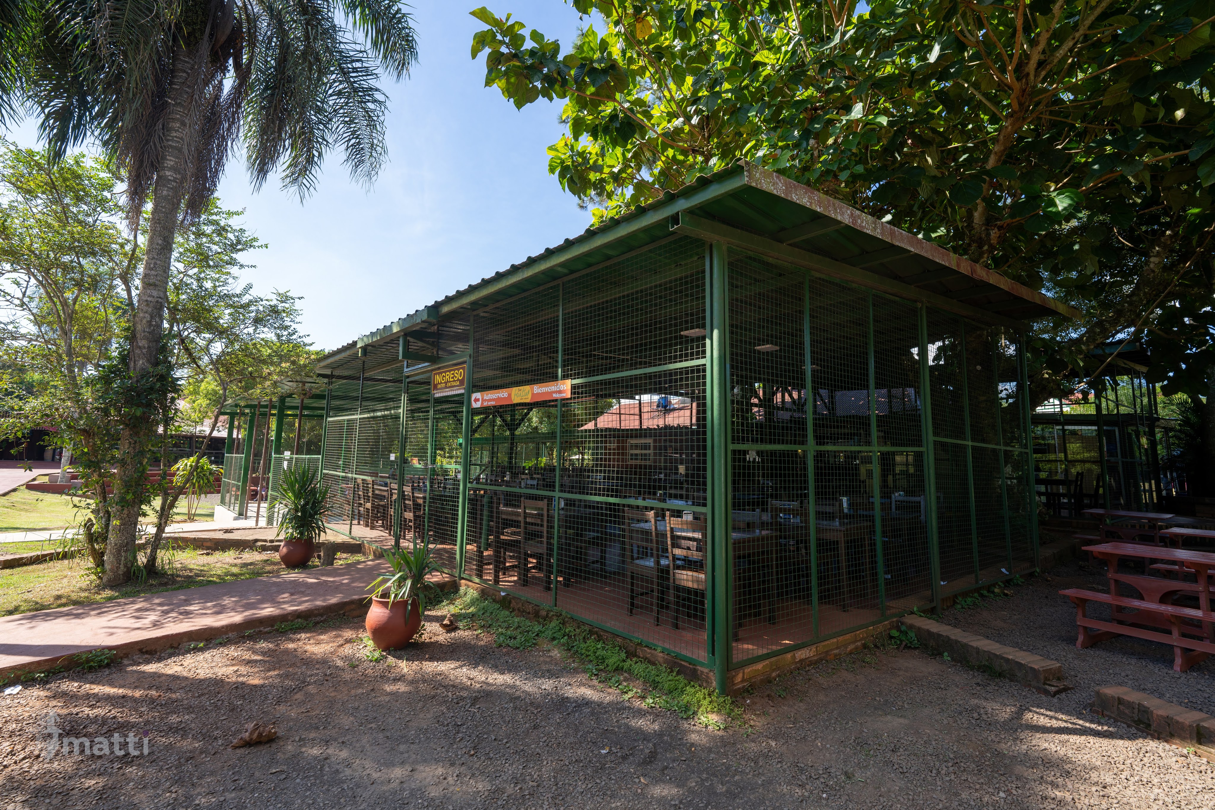 The cage is there for people to eat their food without letting the coati and monkeys come and steal the food (and also encouraging bad behavior of wildlife and humans).