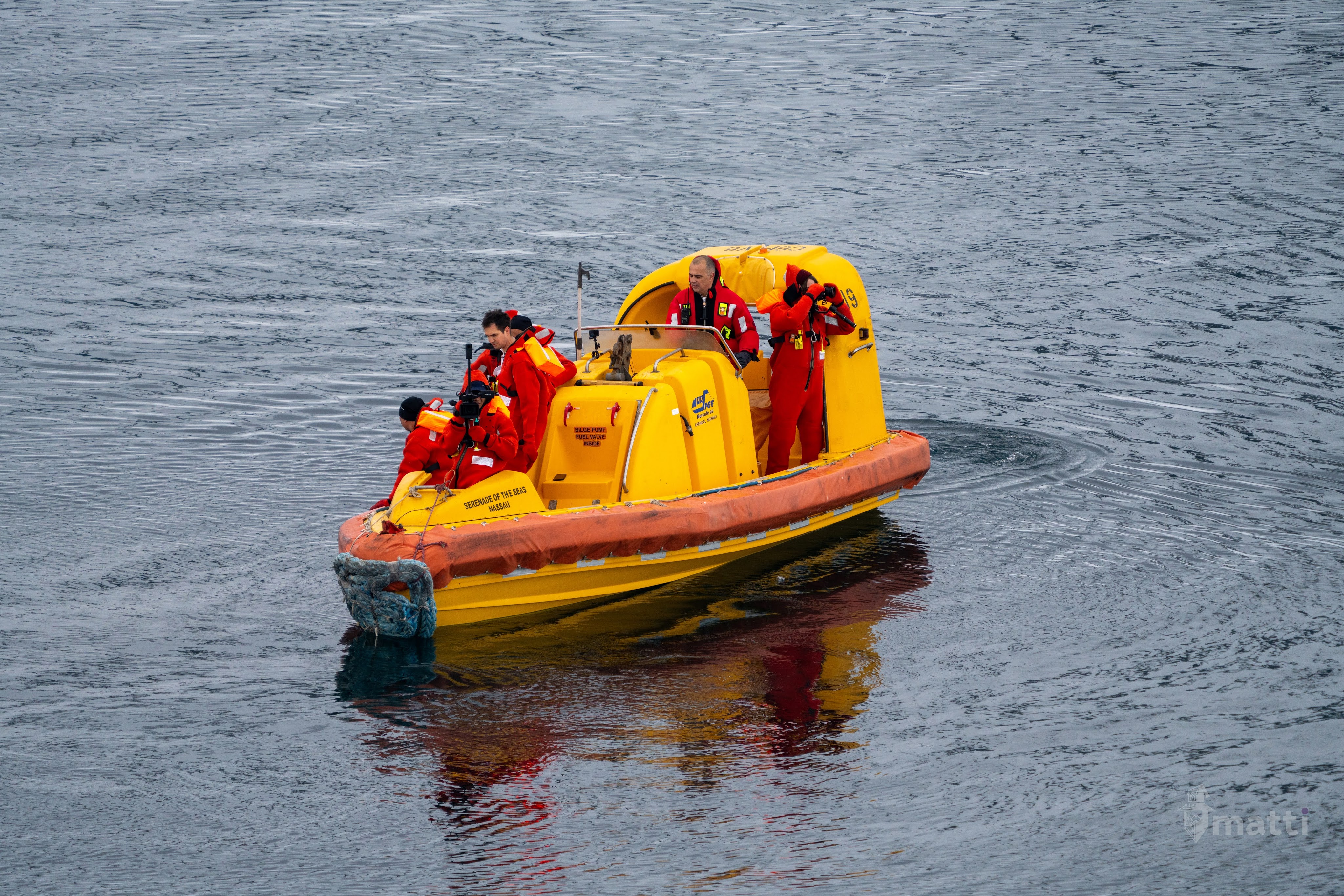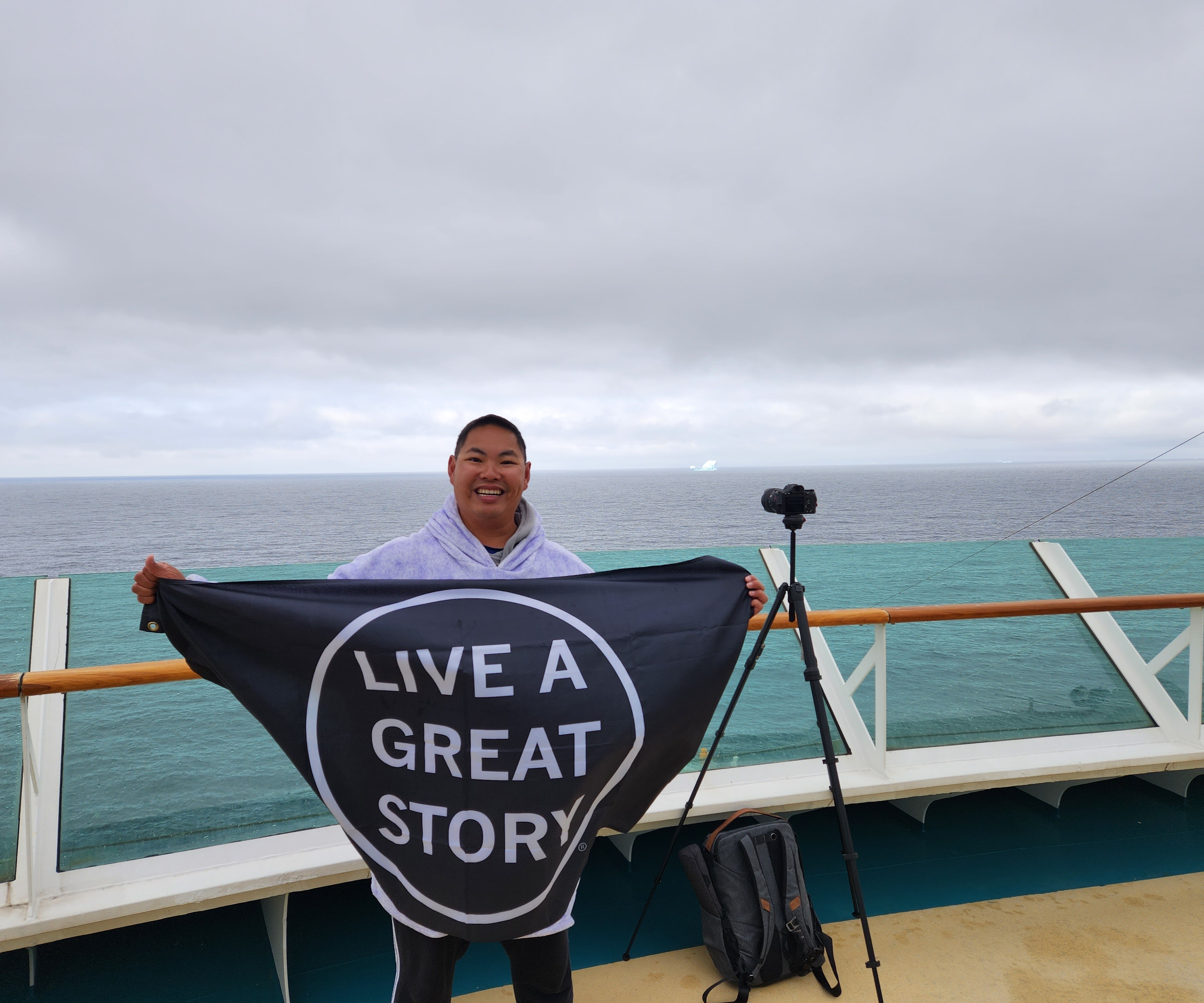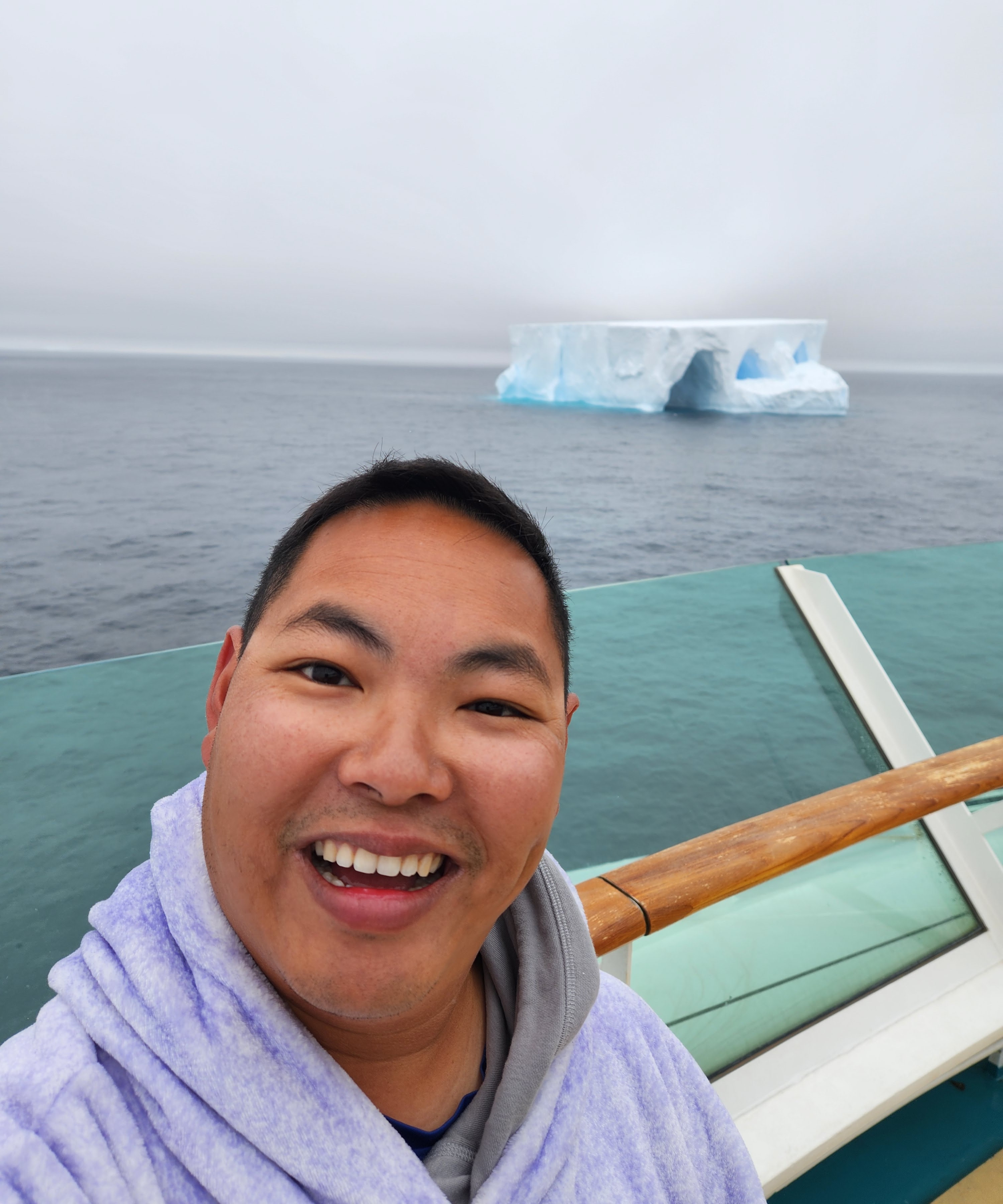 We ended up staying there for a while while they lowered a small boat to grab some ice and have the photographers take our photo from different angles (of the boat). I definitely grabbed prime real estate in the photo with my comfy prominently displayed.