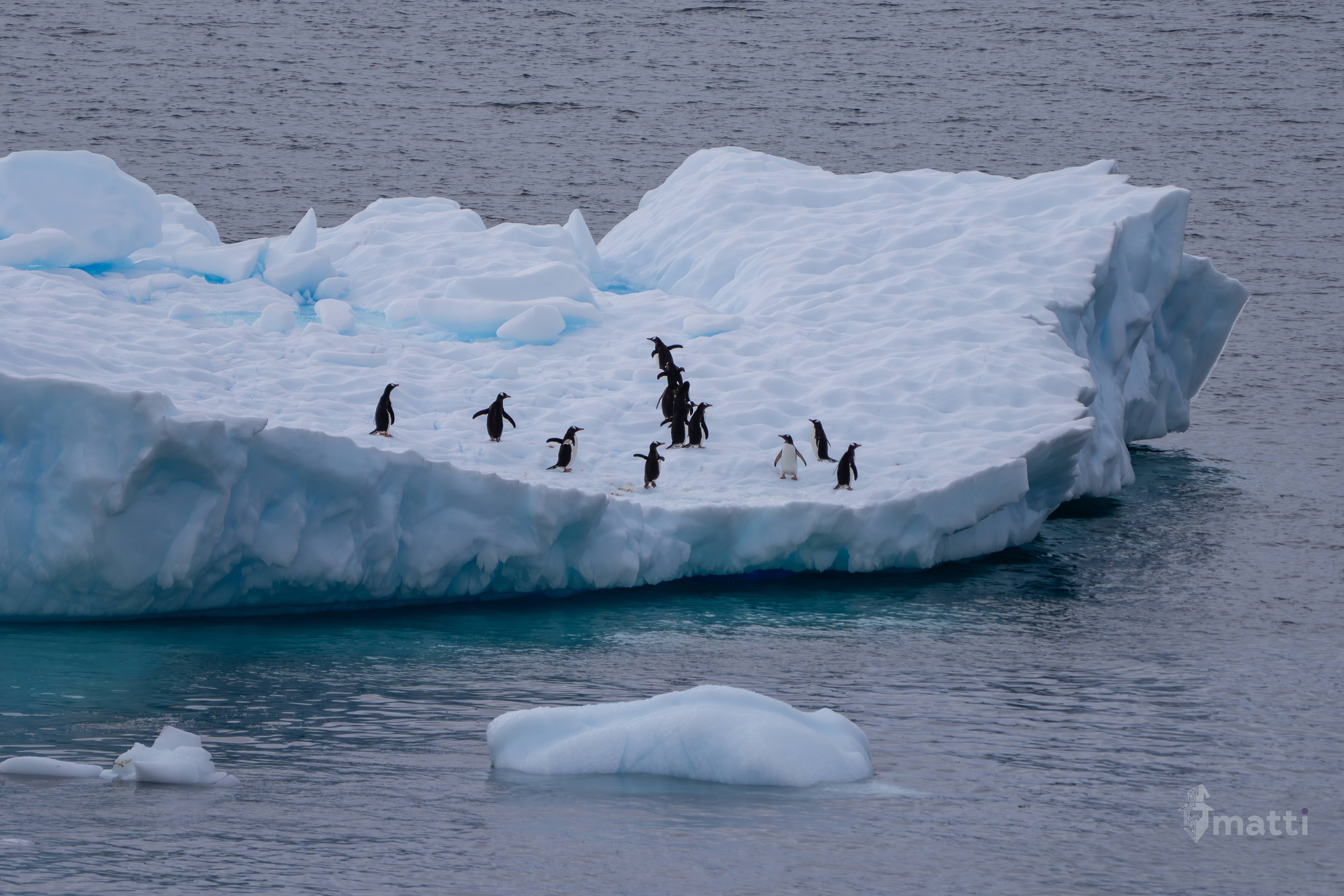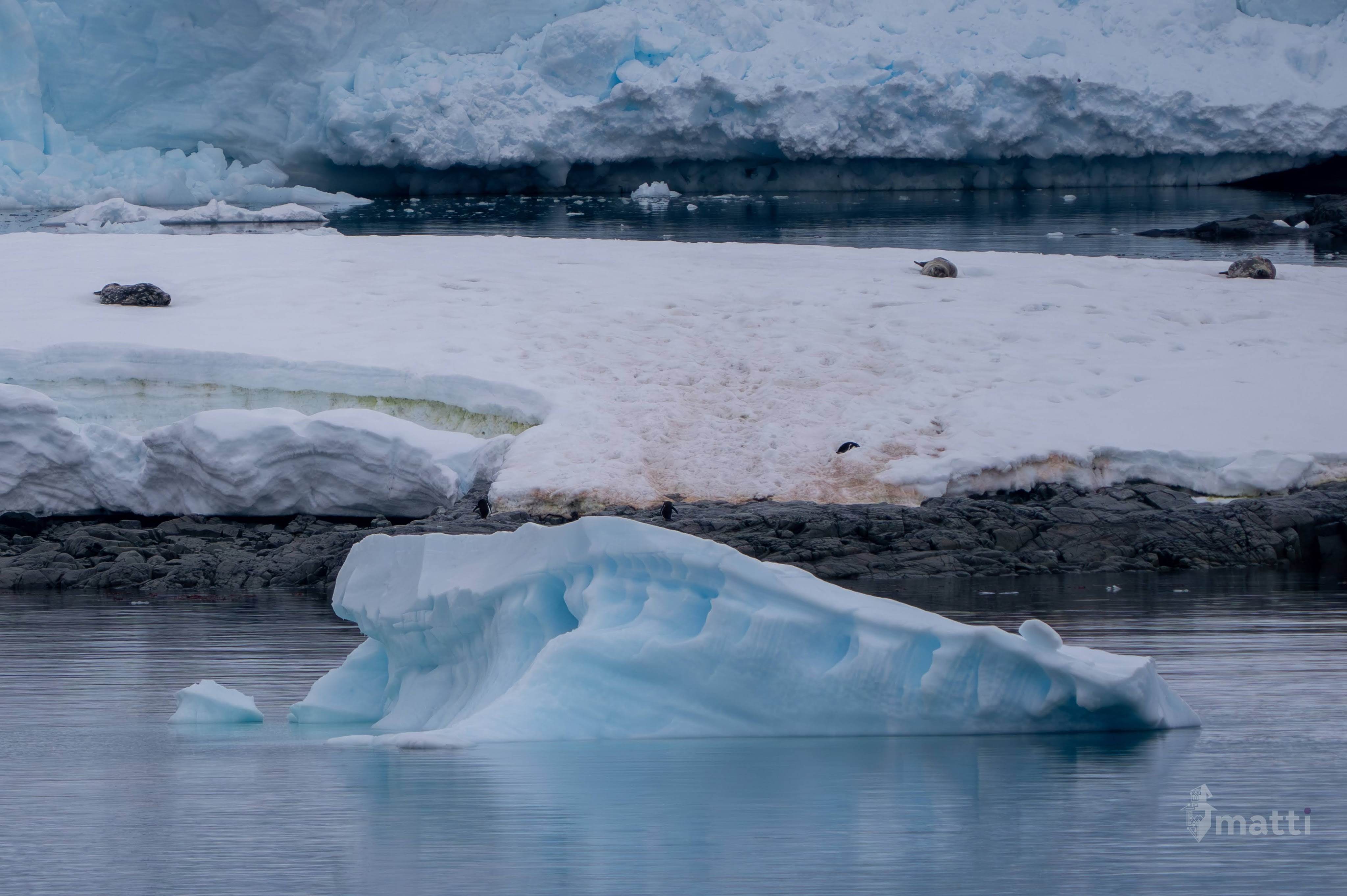 So many penguins all over. Lots jumping in and out of the water around the ship all day long, and then a lot chilling on the icebergs and just generally waddling around.