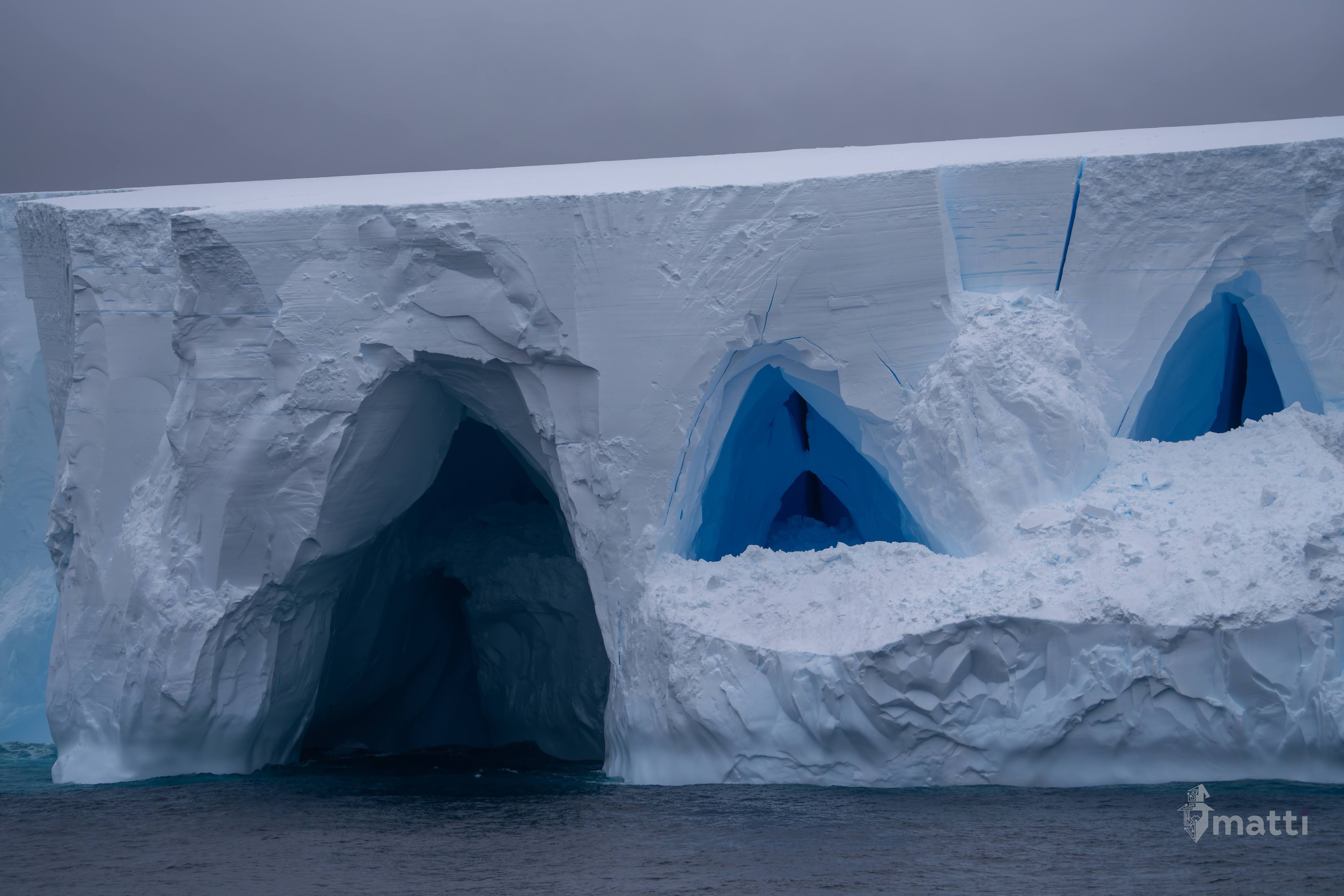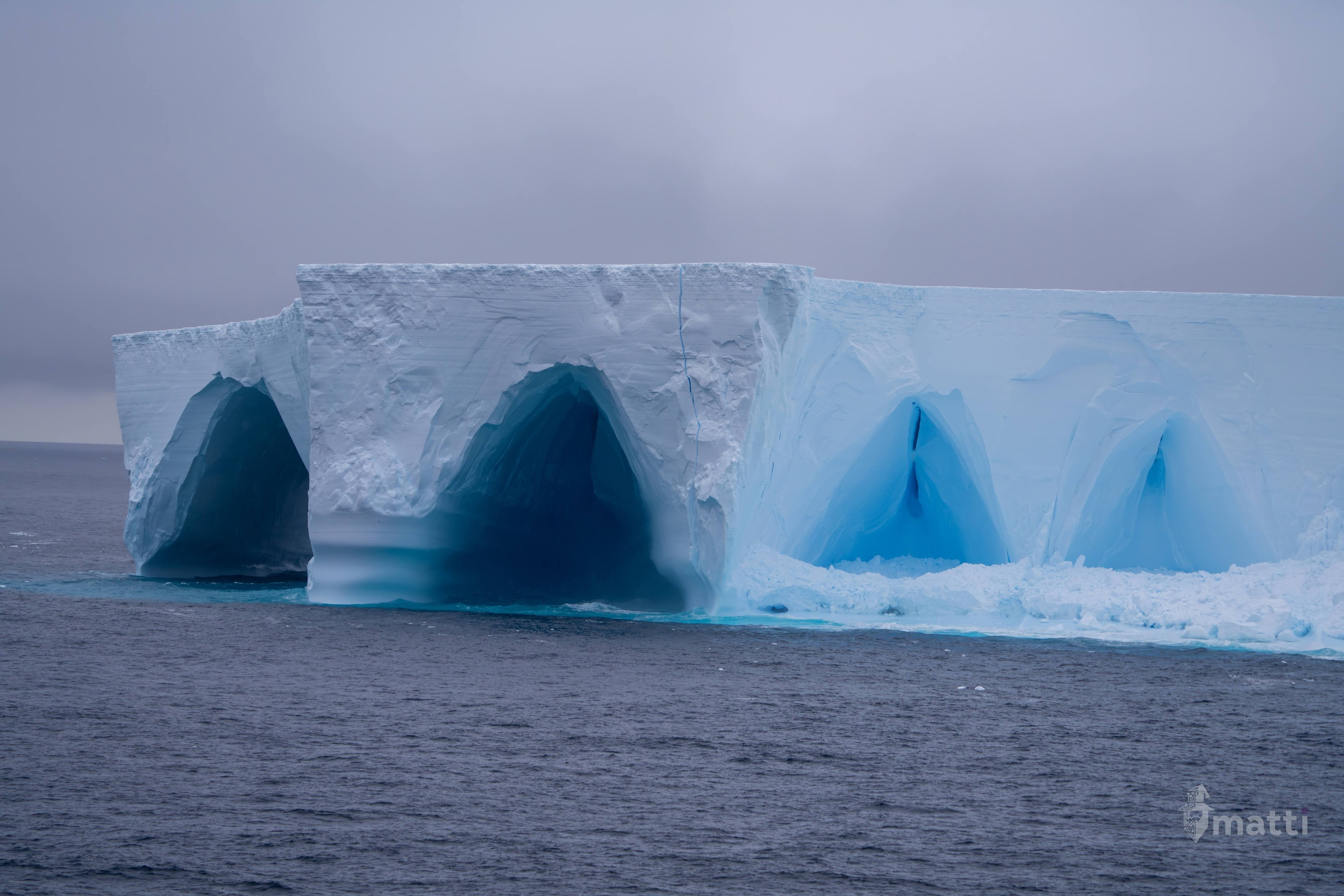 We started off with LOTS of icebergs, and from far away I noticed one with some fun arches, but after snapping like 50 photos from a far, the captain announced we were making a detour to go closer (like….REALLY close), so ended up getting some really detailed pictures of the iceberg too.