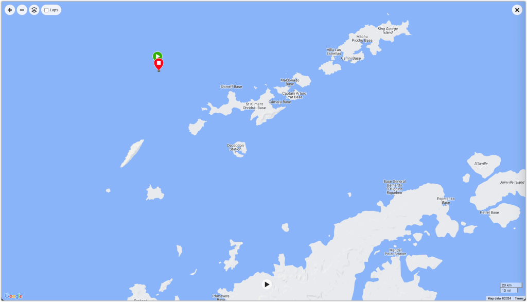Our route, you can ignore the straight line, that’s when we go back into the cabin and it auto locates you at the last known port.