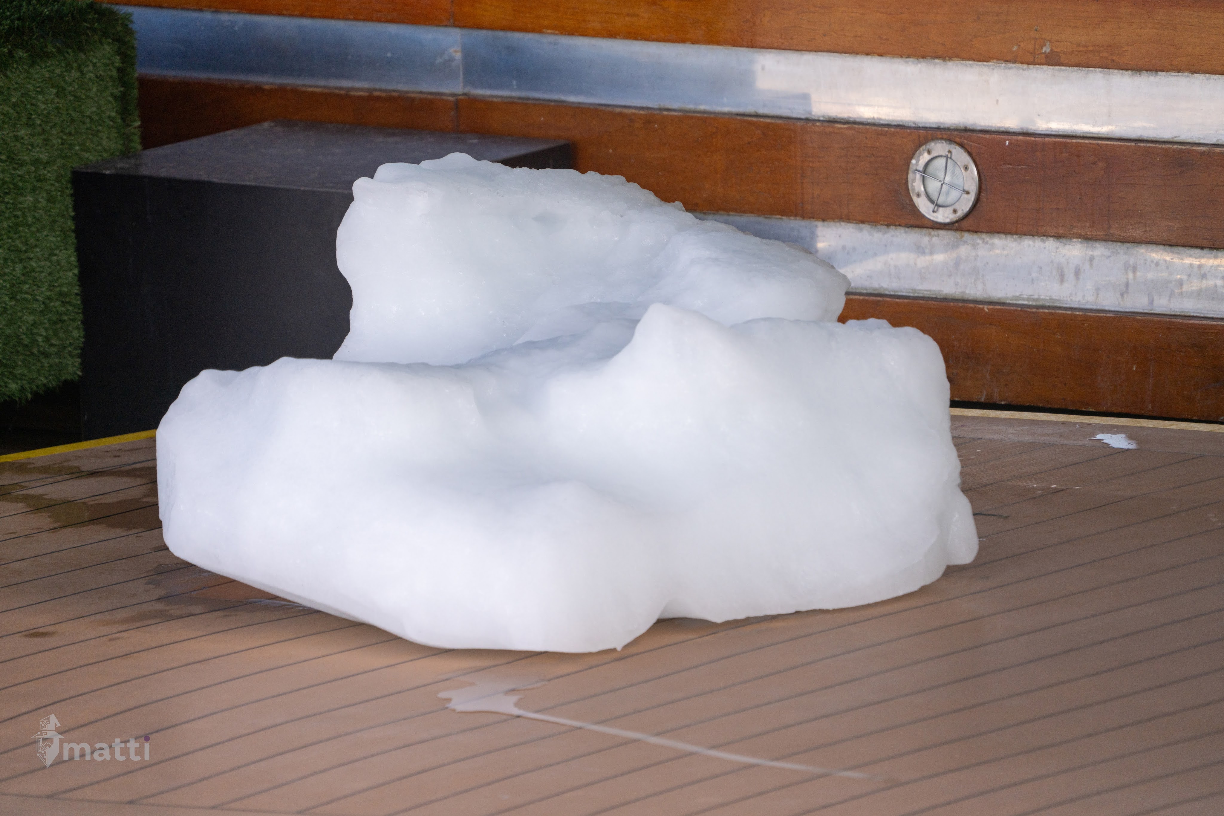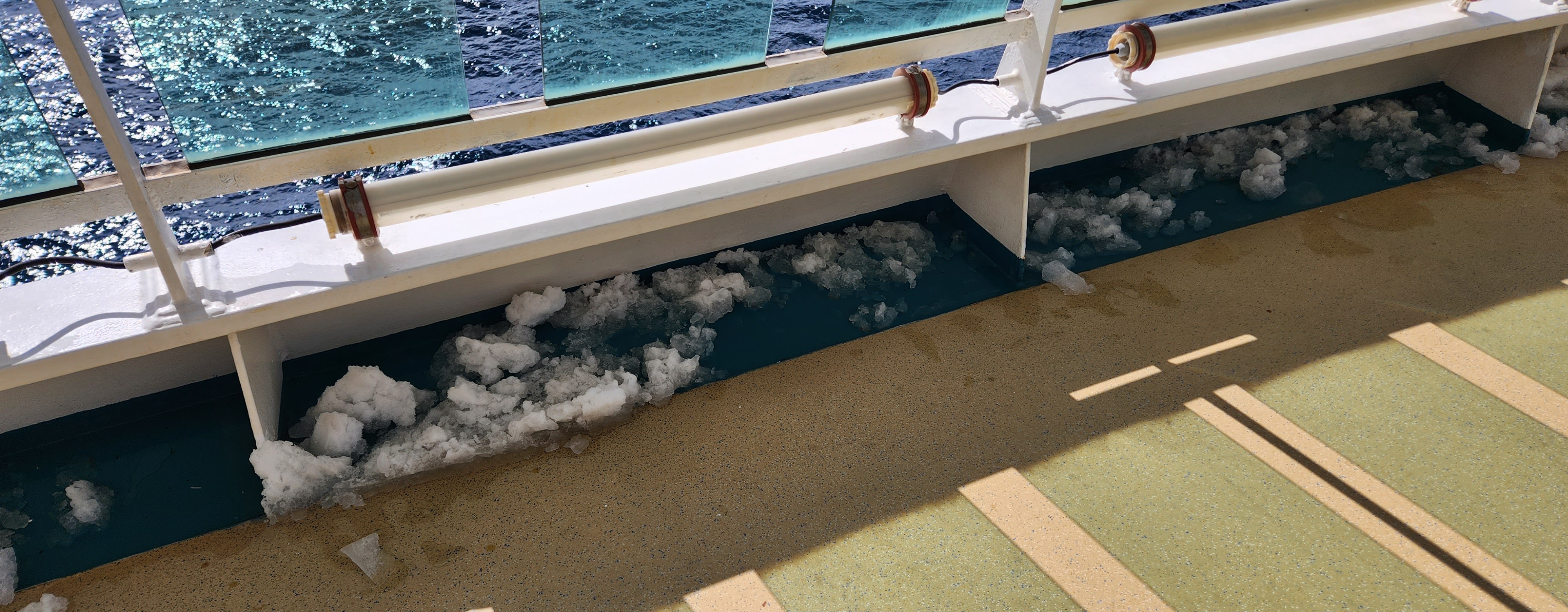 Woke up and headed outside. Even though we had a afternoon arrival time to elephant island (scheduled for 2pm), my lesson from yesterday was that the views were not something I’d want to miss by being inside. I grabbed all my stuff (and a chai latte) and headed upstairs for the day. Passed part of the ice they grabbed off the ship as well on the way :D.