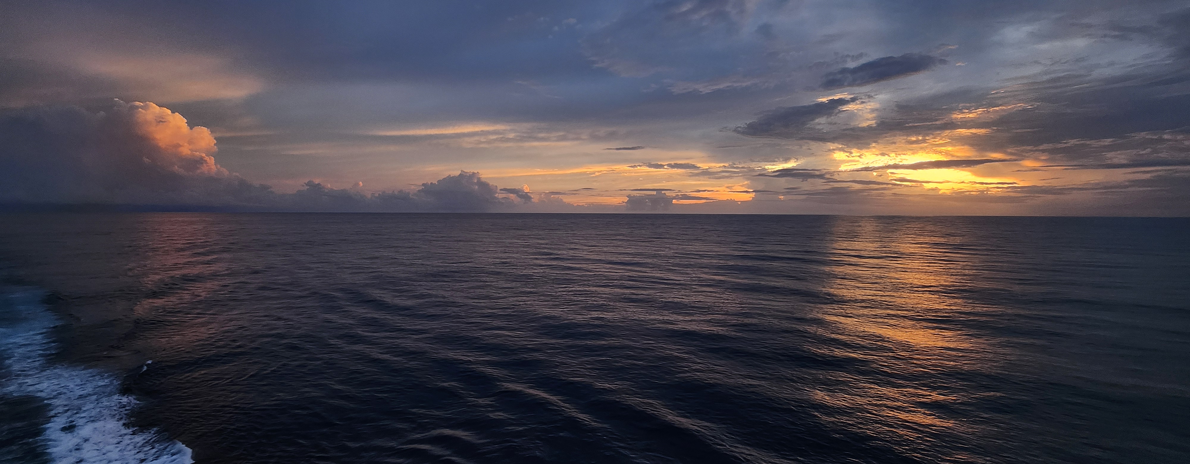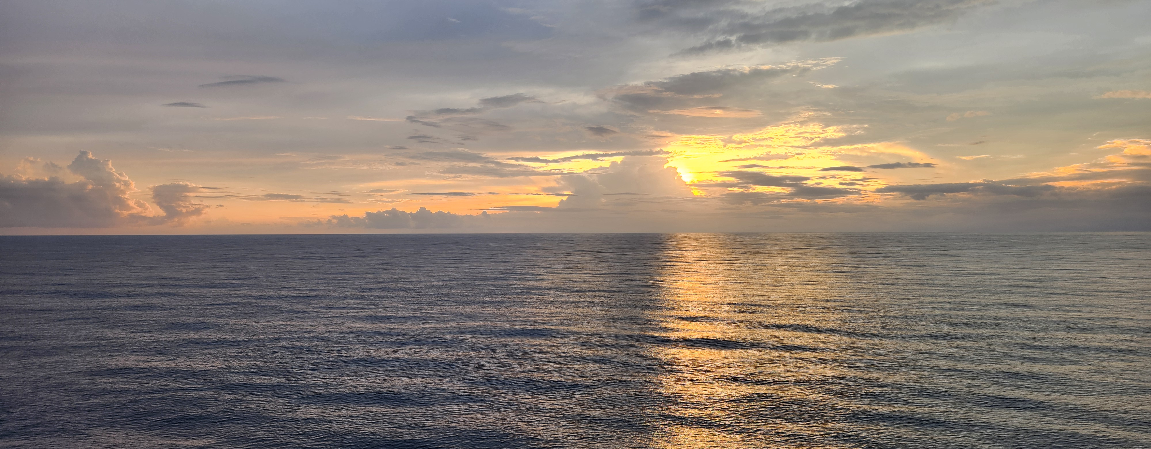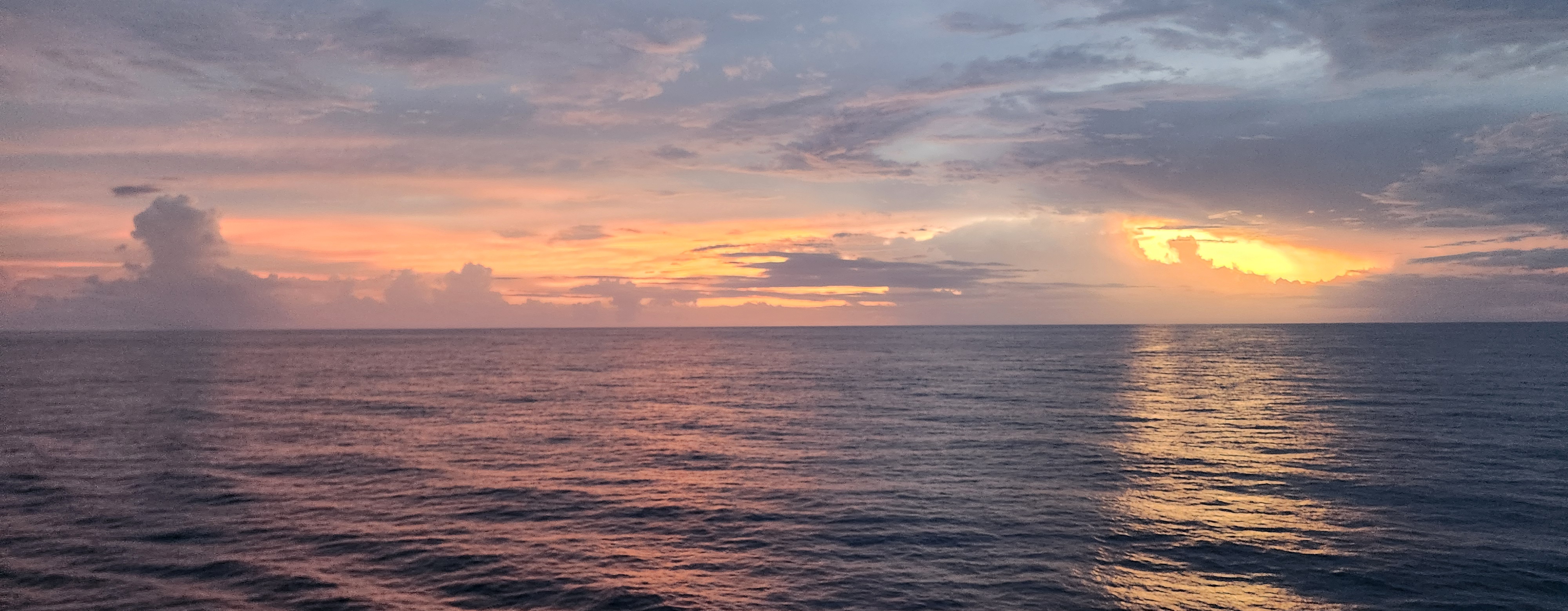 Lovely sunset out on the aft side of the ship. Love the layers of clouds and the pink and purple that come out right after the sun sets.