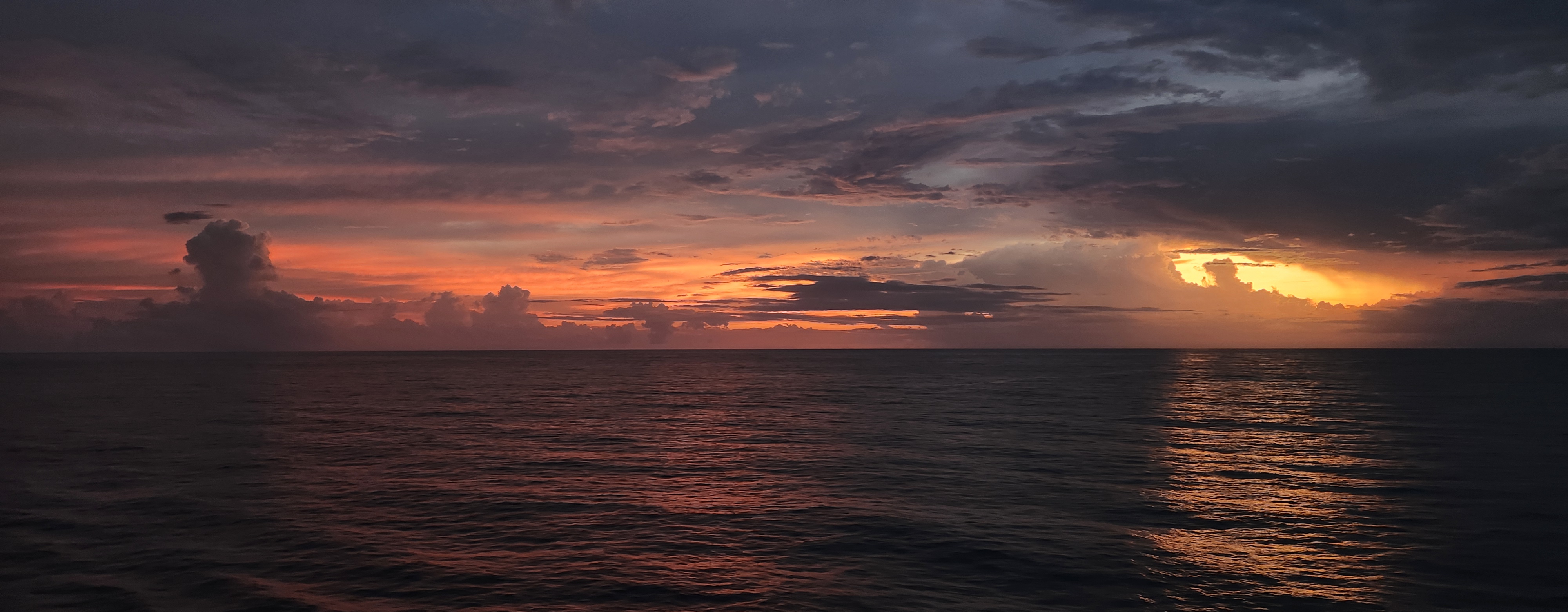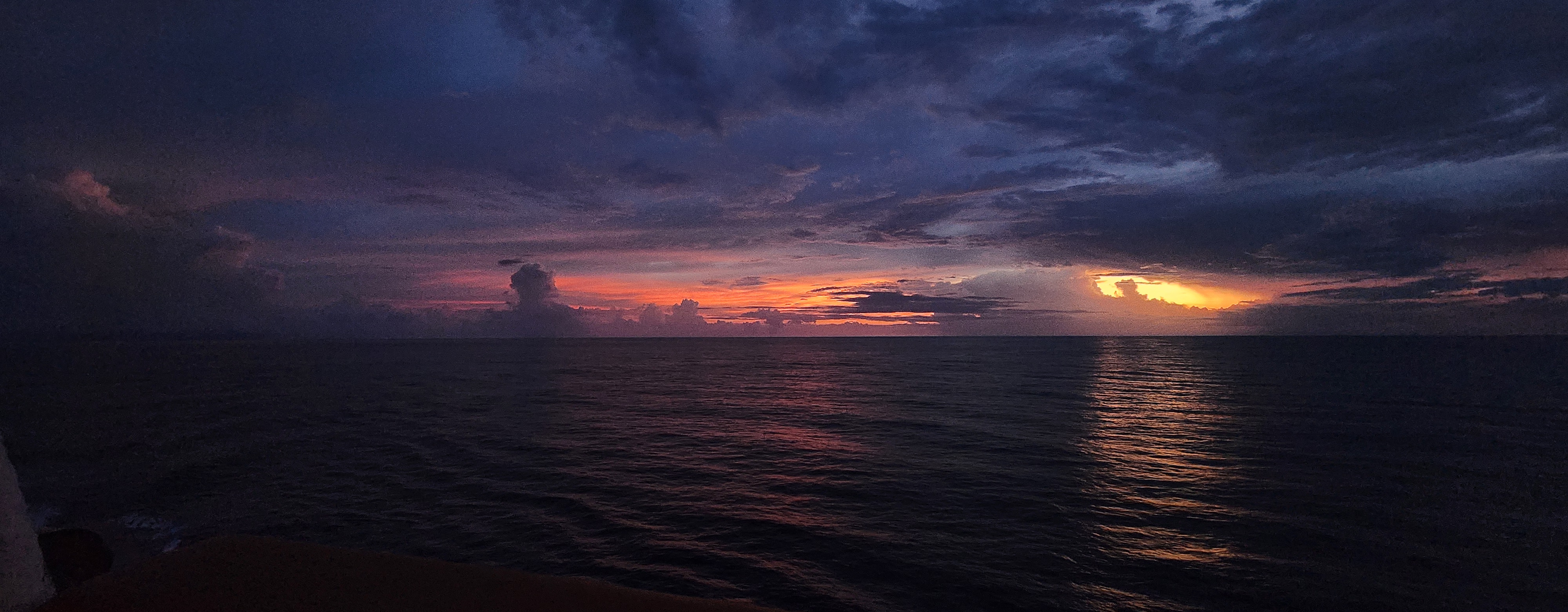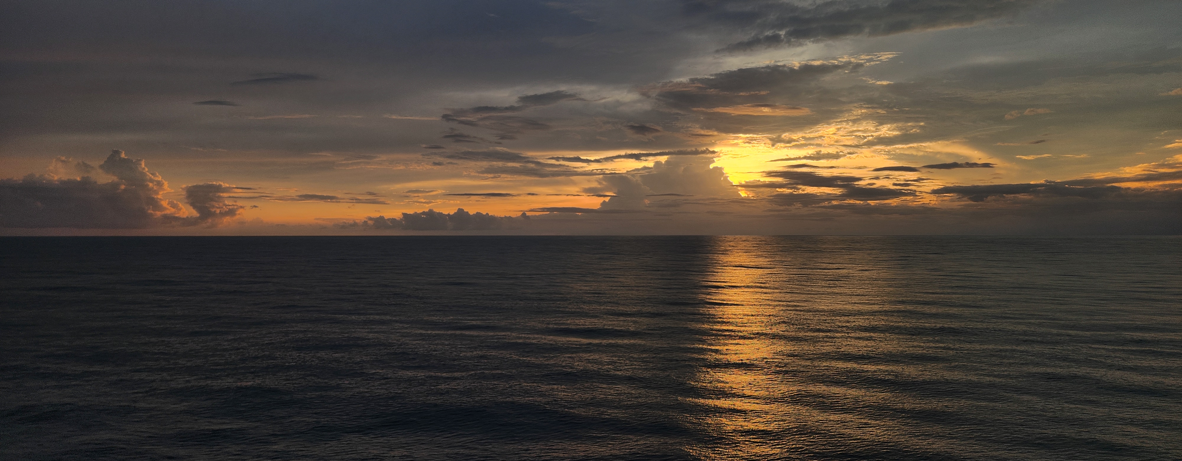 Lovely sunset out on the aft side of the ship. Love the layers of clouds and the pink and purple that come out right after the sun sets.