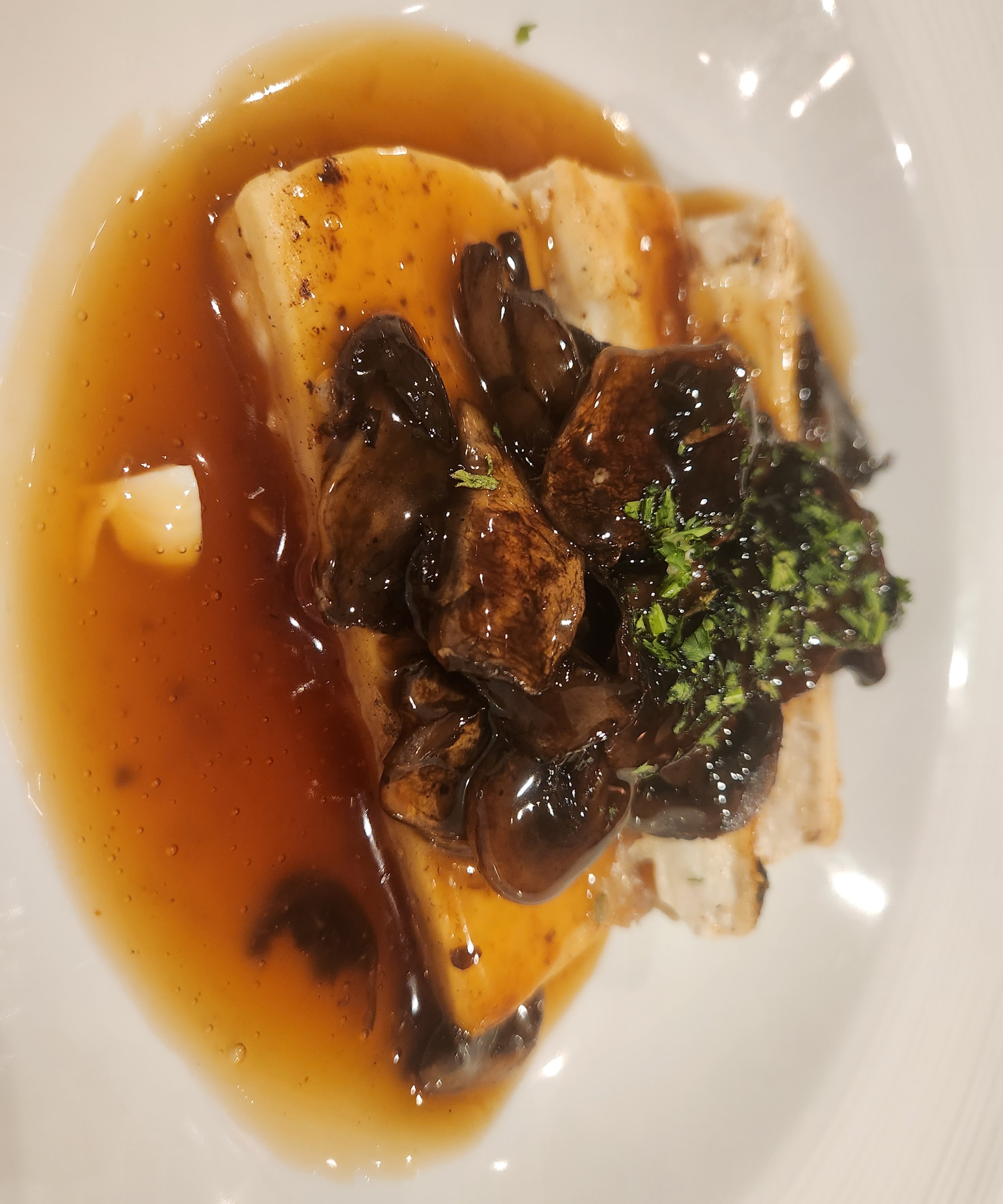 Went late to dinner, cause I was having a conversation with someone, but had a nice caesar, pan fried tofu and then a jaffa cake to top it off.