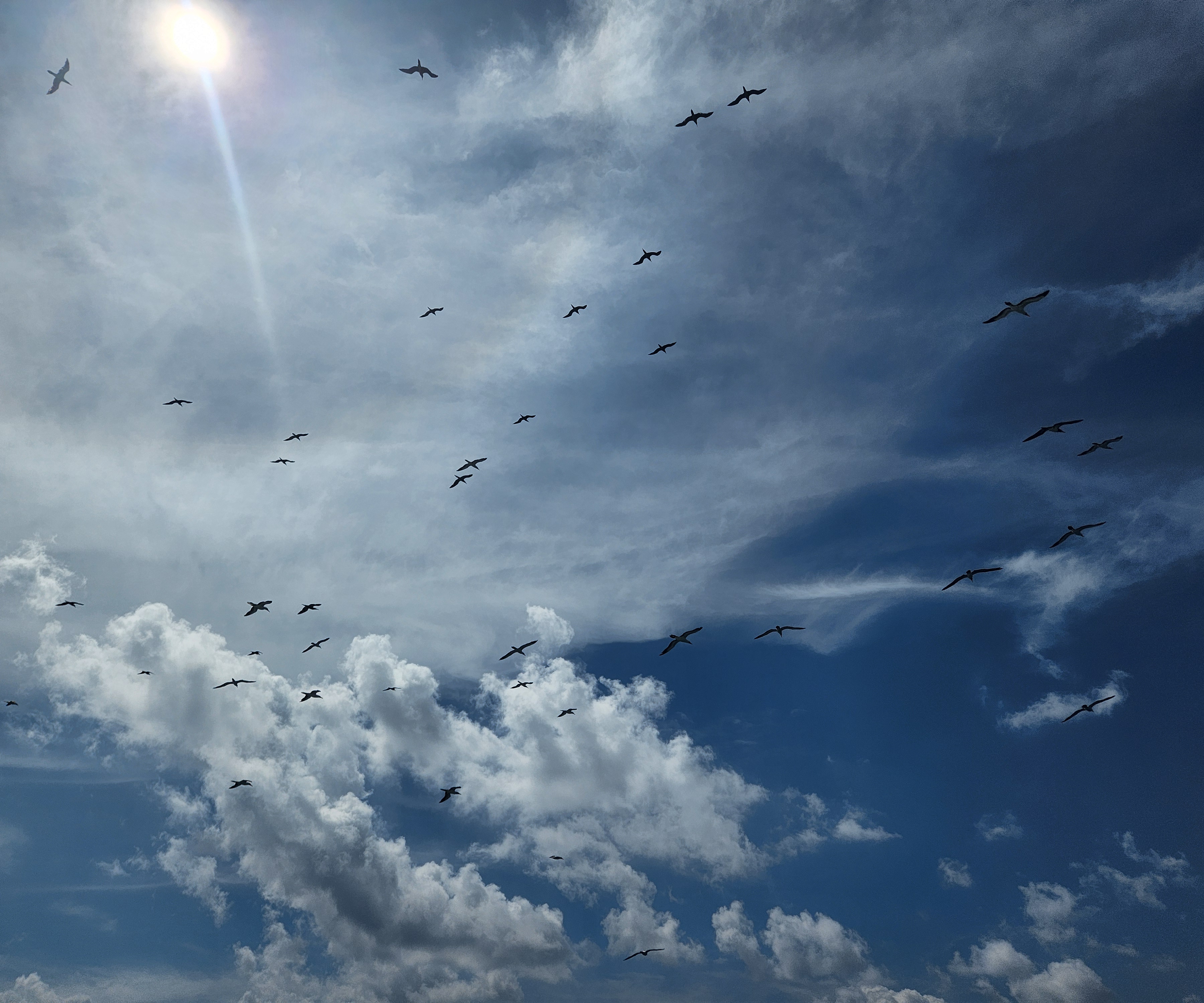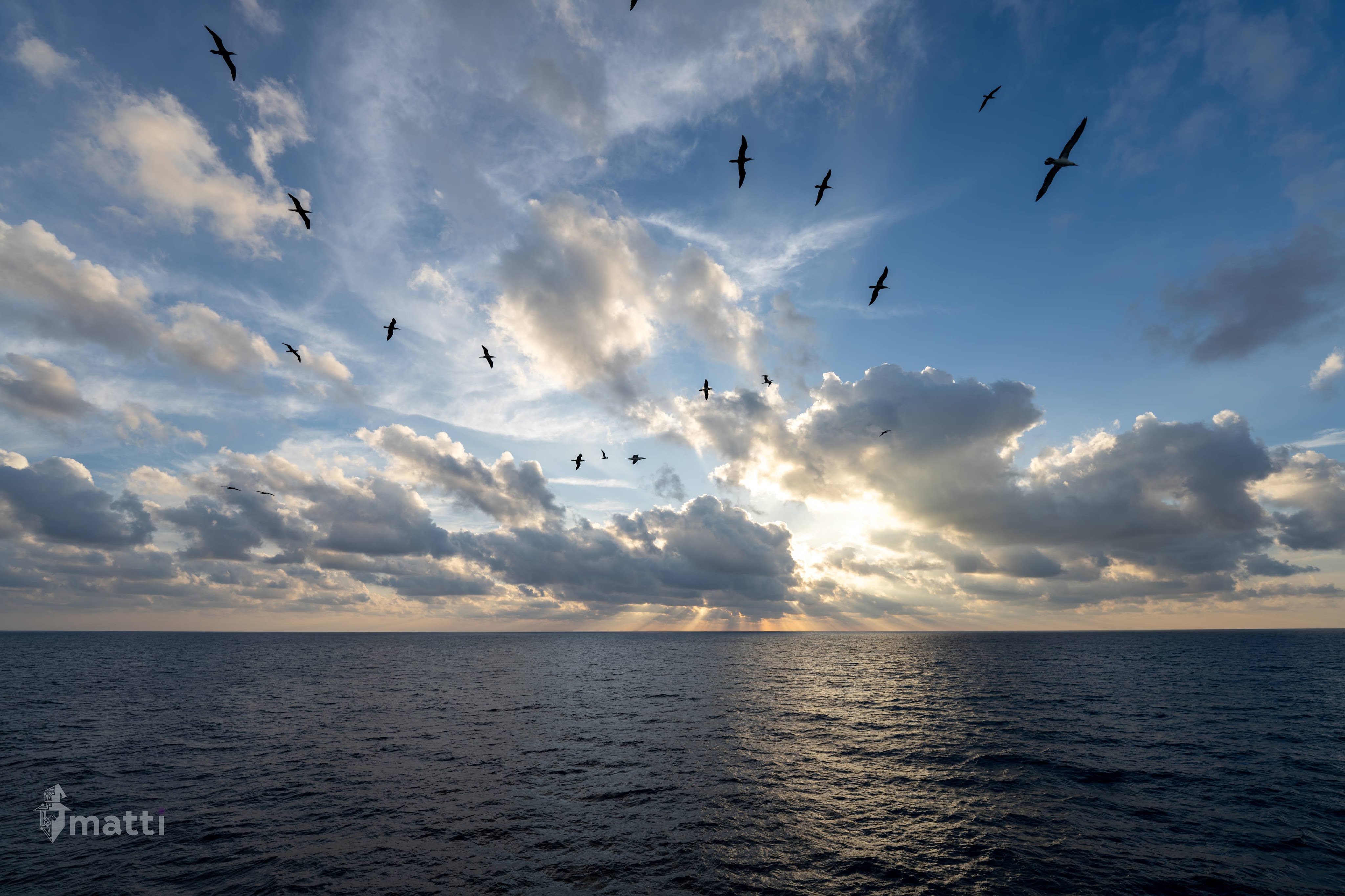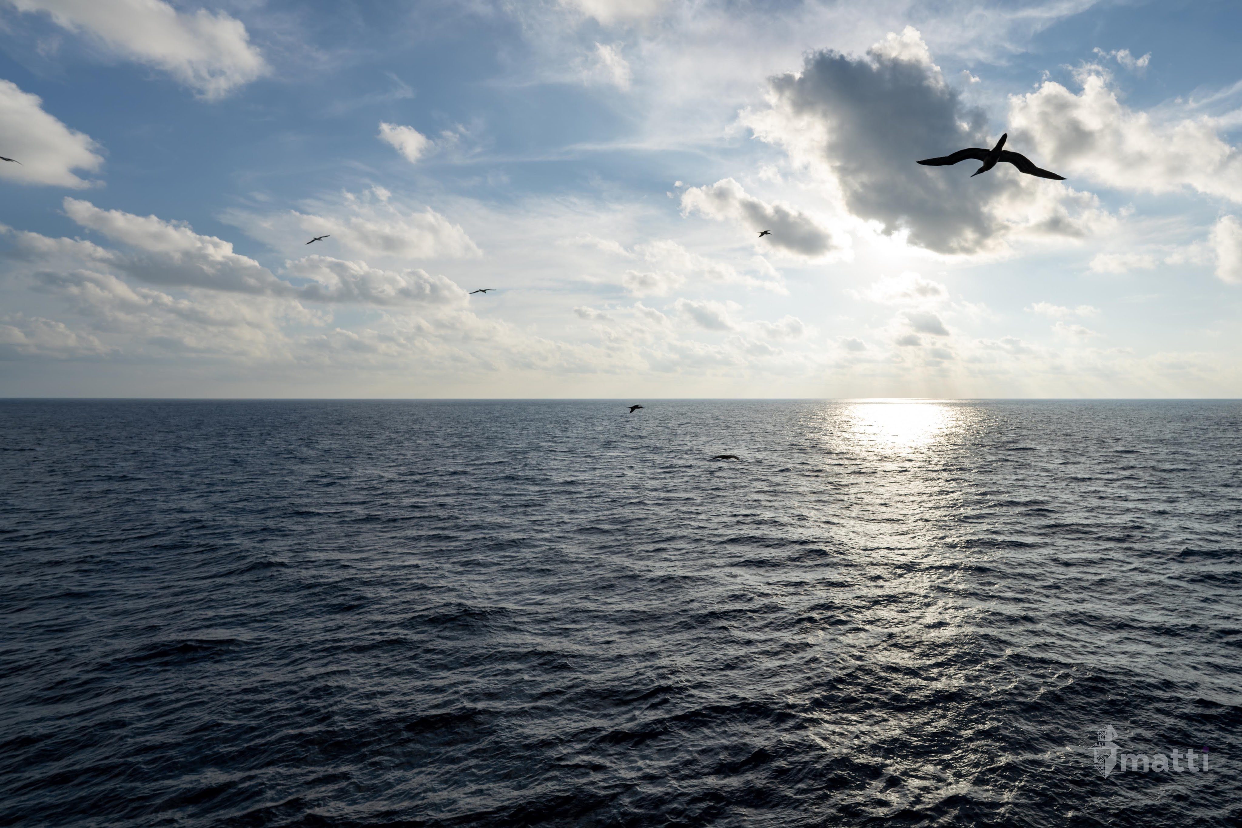 Was heading to get some coffee, when I looked outside and saw a bird just cruising along in the window with it’s head turned toward me and with the sun lighting it up from above. I went out to snag a couple of photos, and started following it and found myself on the helipad, and as I reached the top of the stairs to the helipad, I found that there were a LOT of birds circling along and just floating along as we cruised.