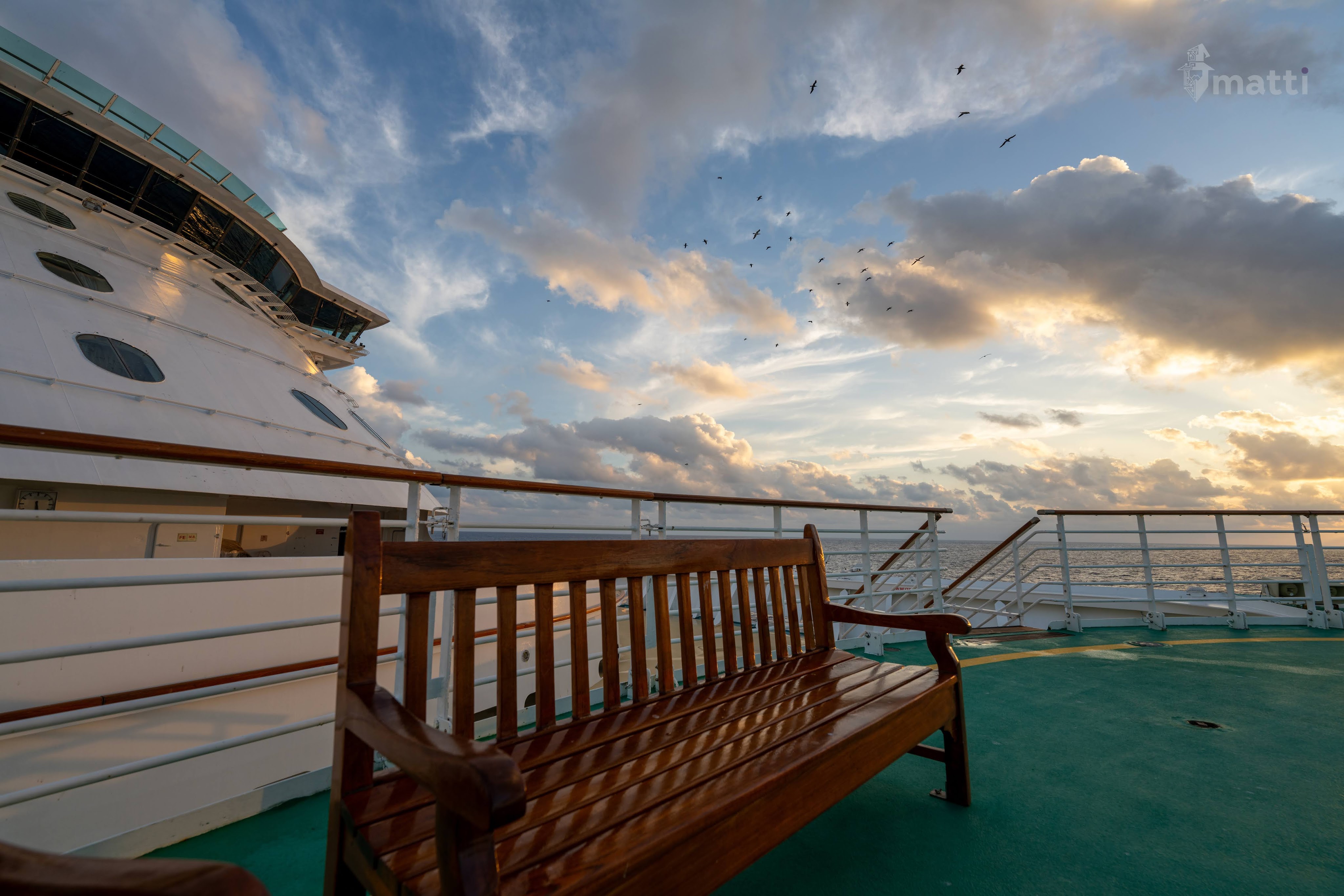 Went back out there around sunset as well, and had a great time with the views. Even saw a dolphin jump out of the water a couple times and swim right under the ship. Really nice time and unexpected on a cruising day.