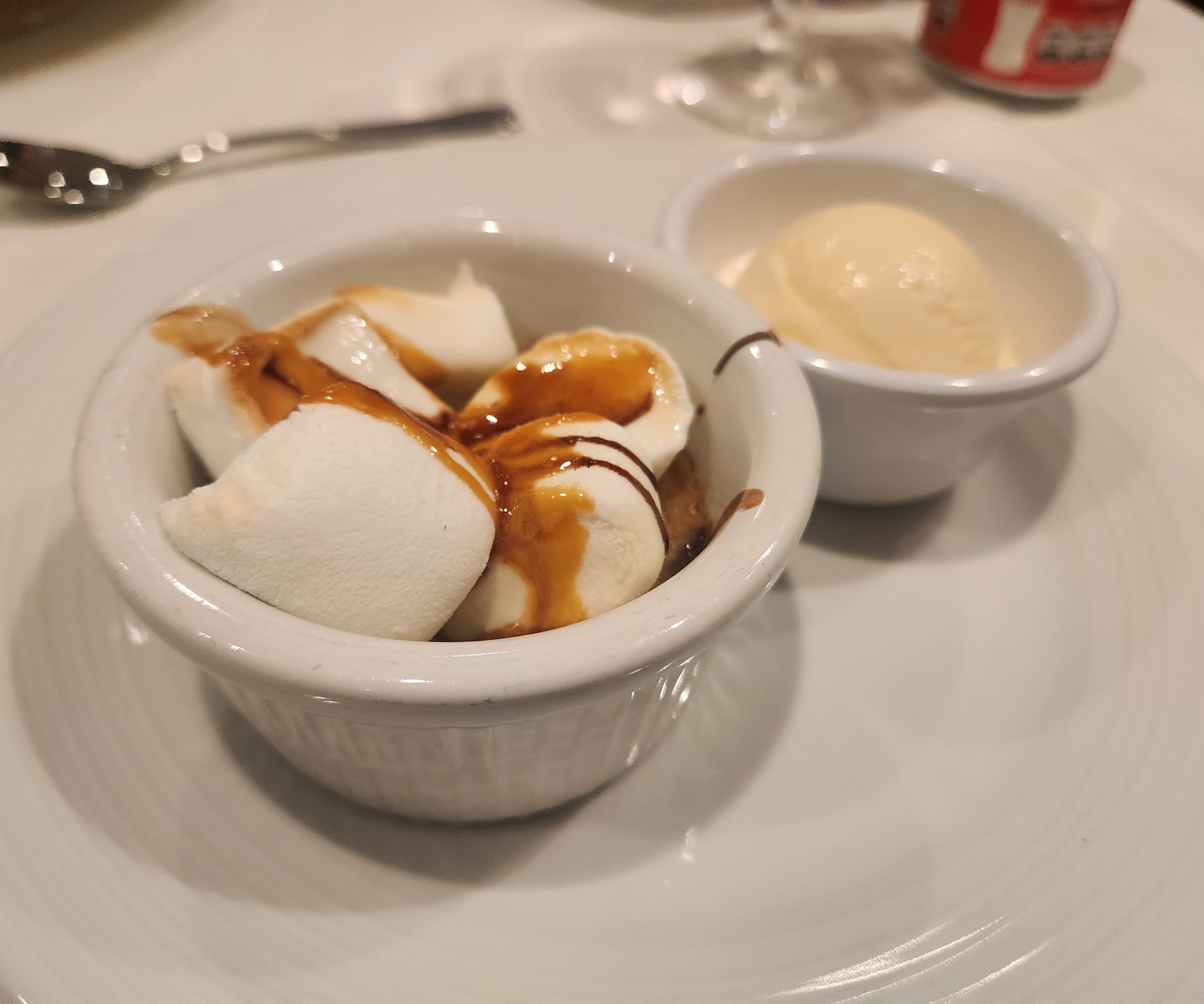 Tomato soup, bbq ribs with creamed corn (delish), and a cookie, nutella and marshmellow concoction that was SO incredibly sweet….thought I was going to go into shock and only ate half of it.