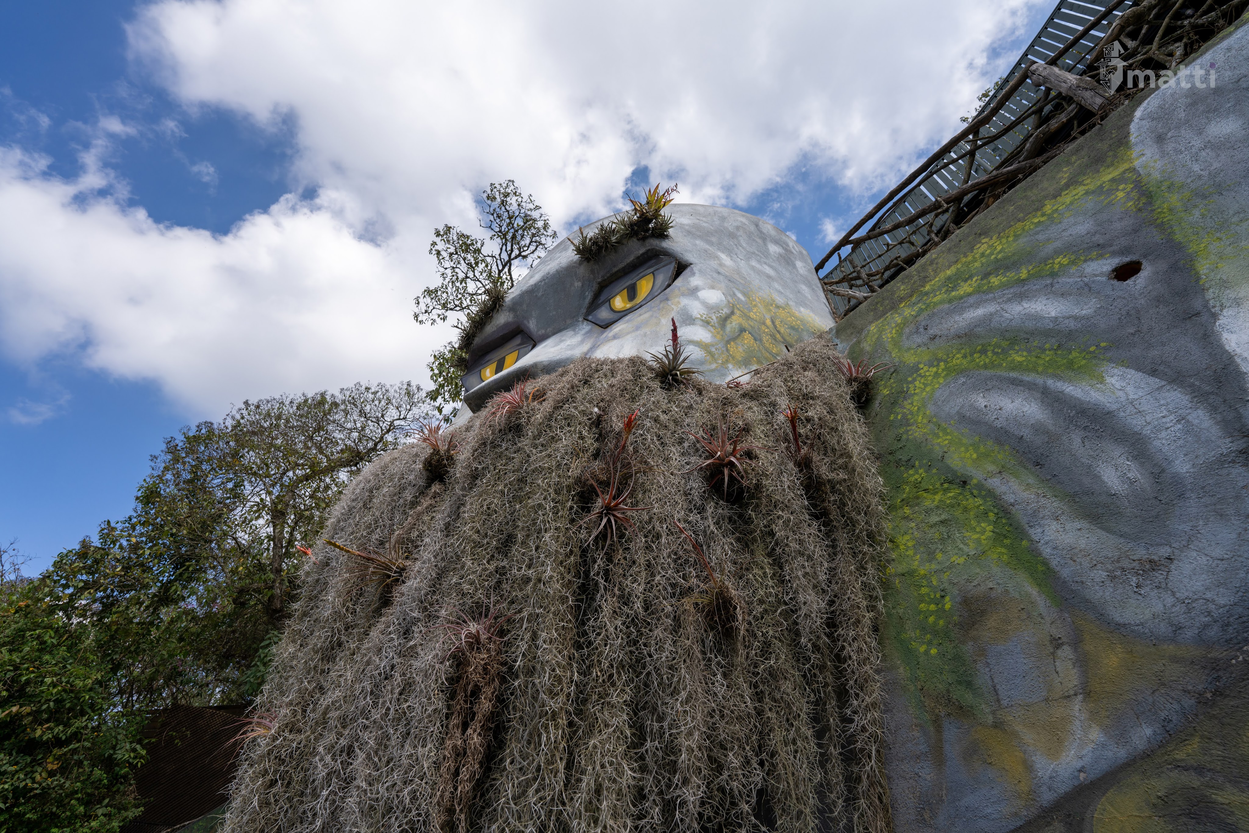 The village at the top is really cool. There’s a bunch of restaurants and lots of activities to do (supposedly axe throwing, games, giant rope swing — which had a long line, so I skipped it). The main attraction (other than the hobbit houses) is the giant troll that has an outstretched hand with views into the valley and volcanoes.