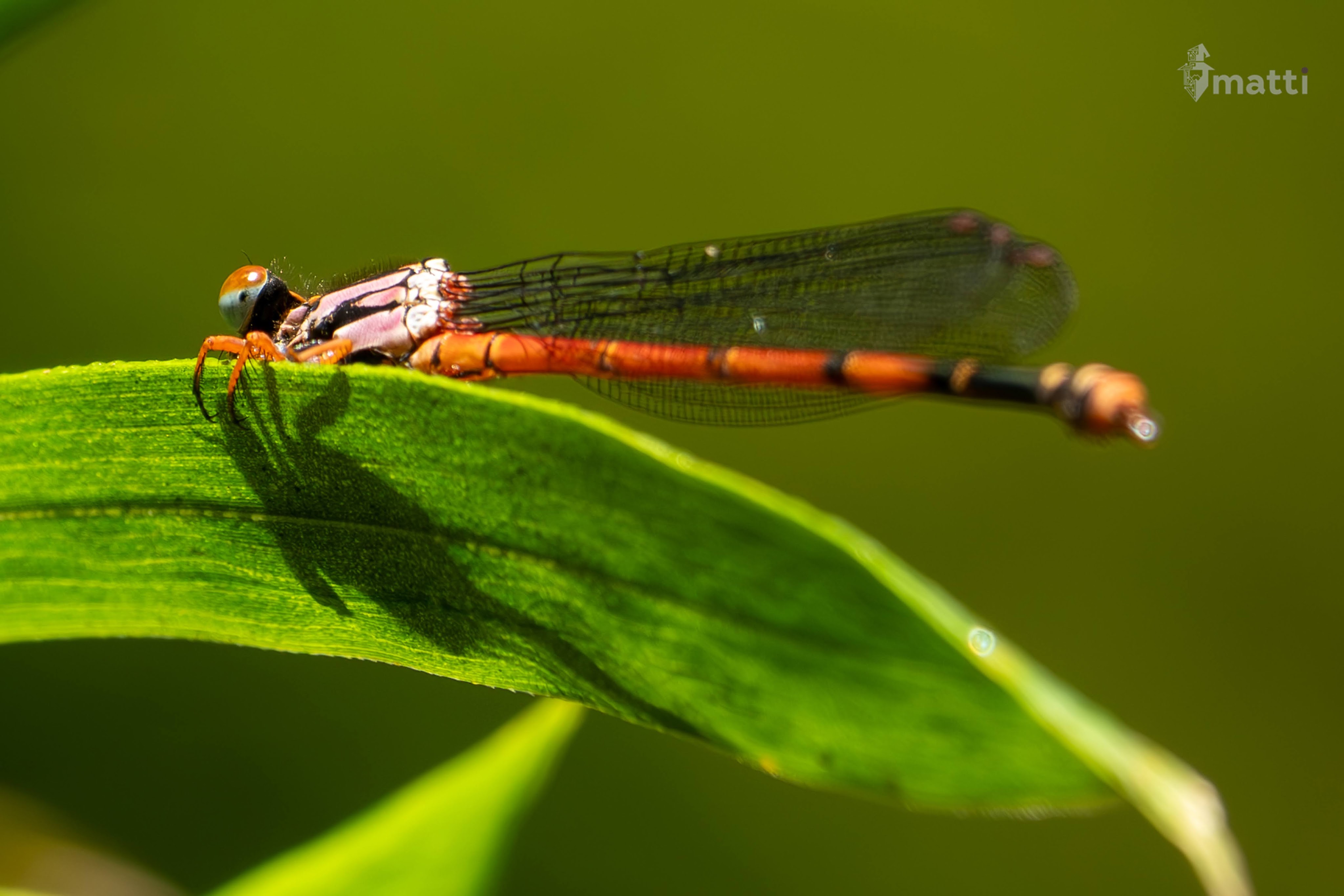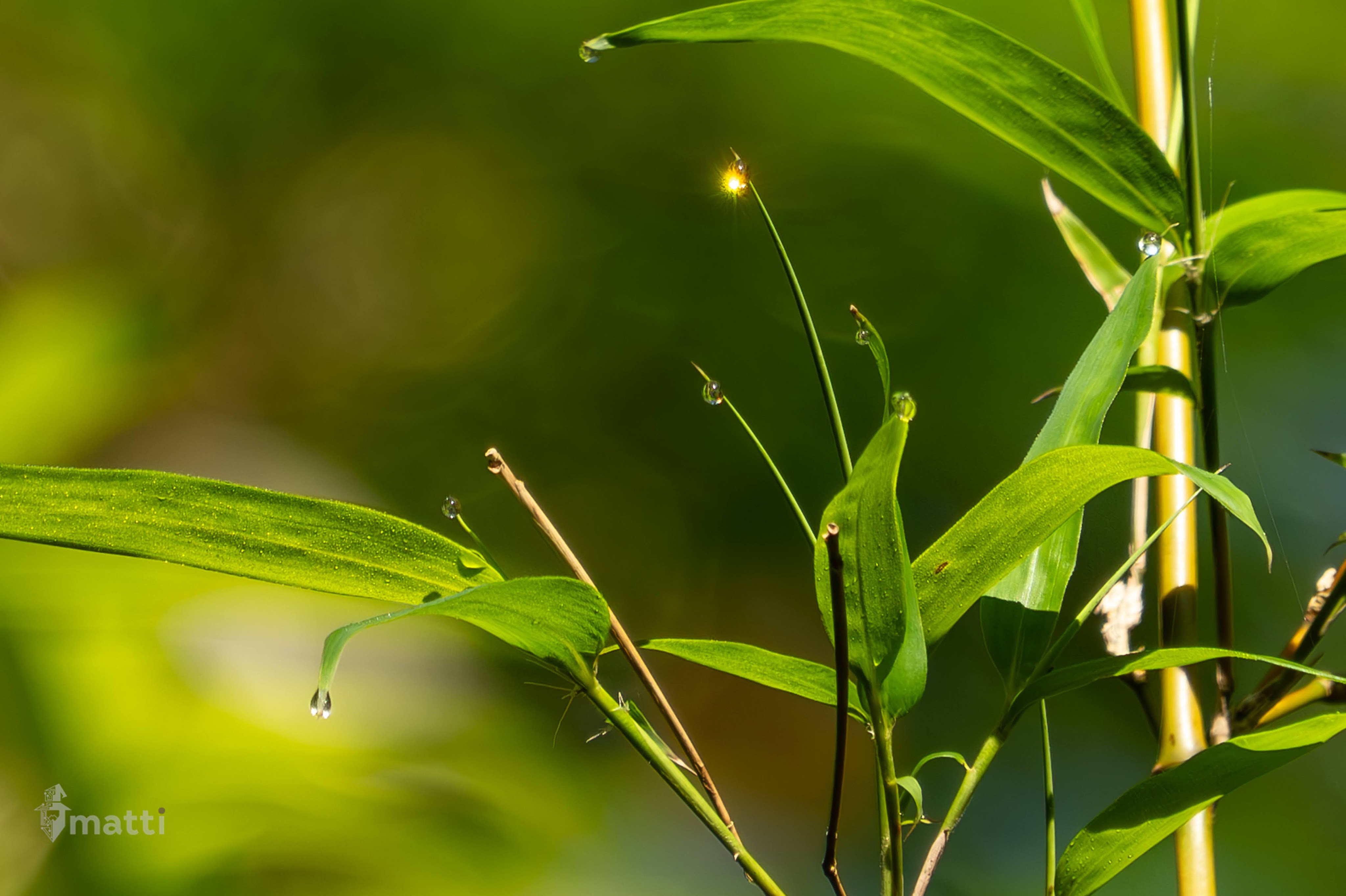 As I rounded a bend, I noticed a glint of sun up in the trees, and as I zoomed in, found that it was reflection of the sun in a drop of dew. Pretty cool. Saw a whole bunch of huge dragonflies as well, which felt like they could eat my face.