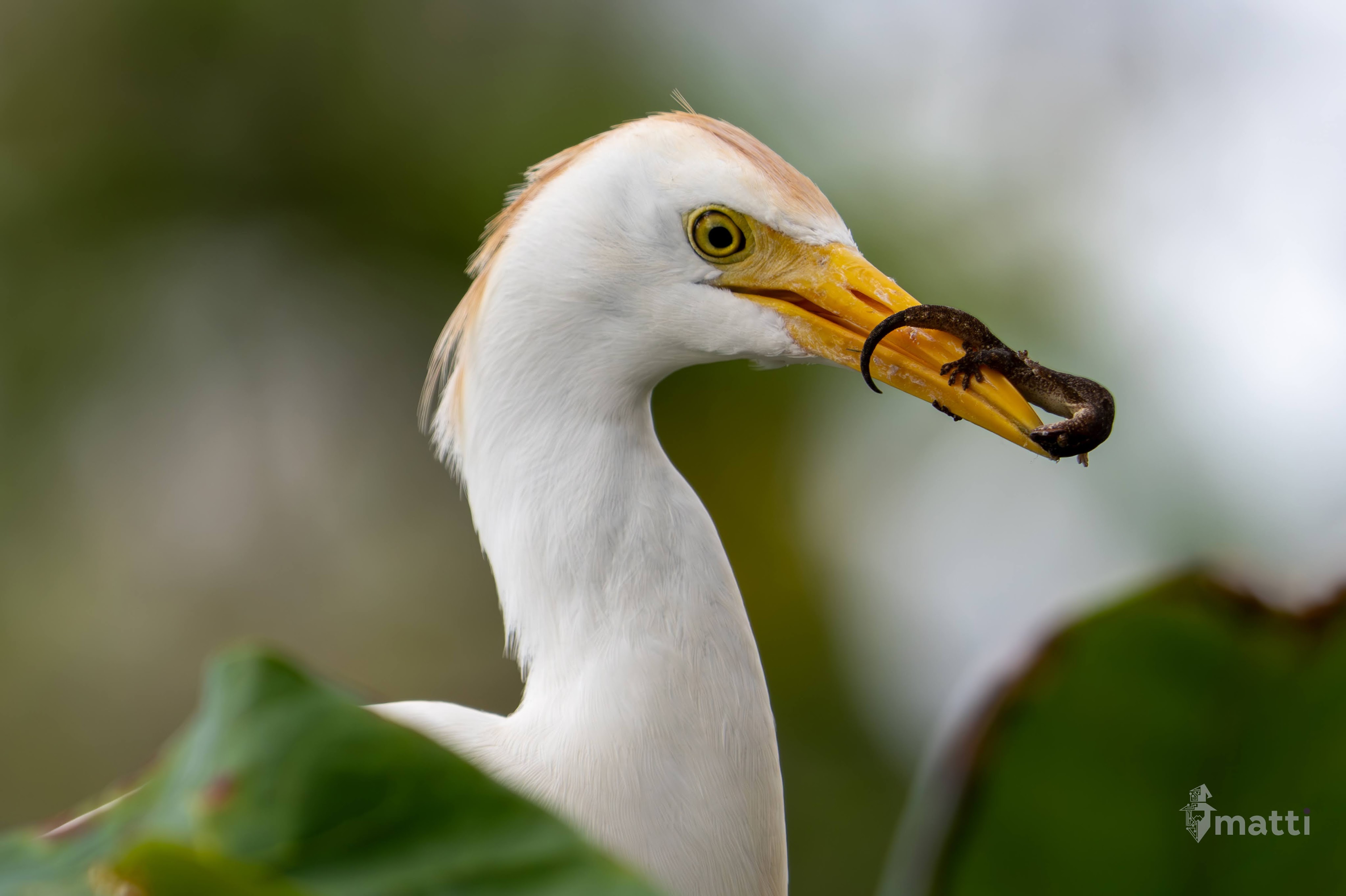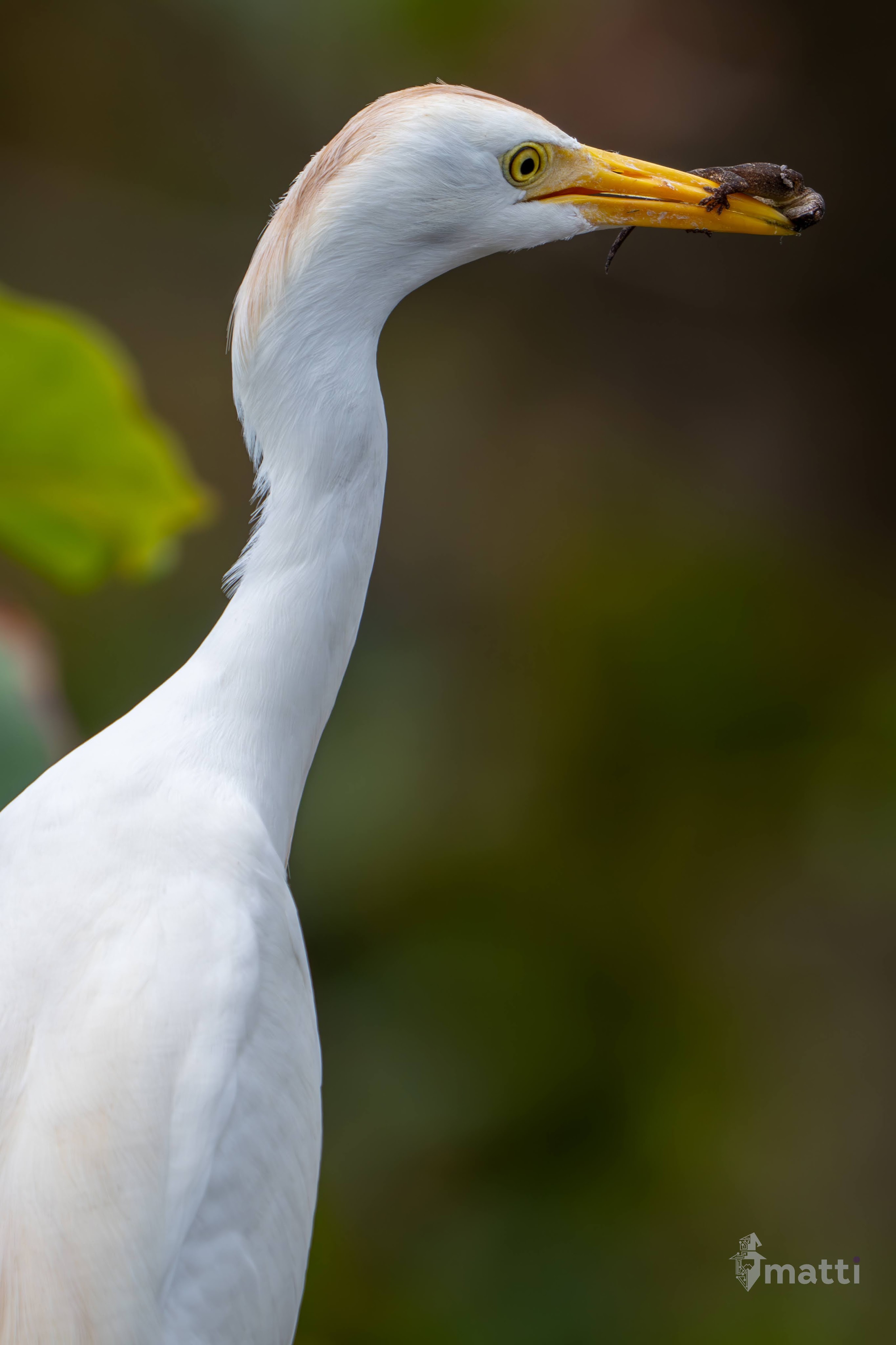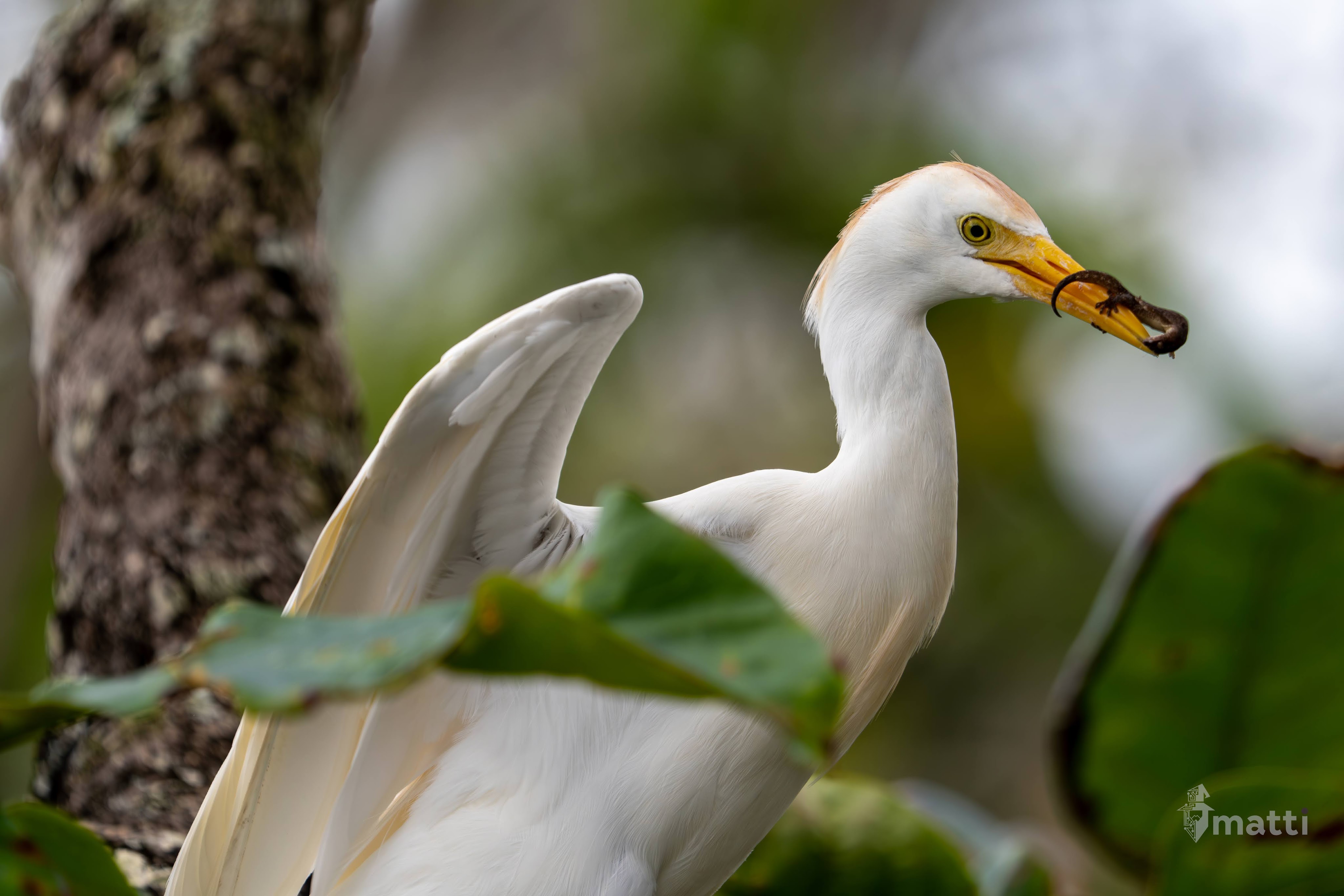 Saw this egret (I think) in a tree nearby, and when it came out, it looked like some dirt or something was on it’s beak, but upon closer inspection, it was actually a little hitch hiker. Can’t tell if it’s holding on for dear life, or if it’s just grabbing a lift, but pretty cool either way.