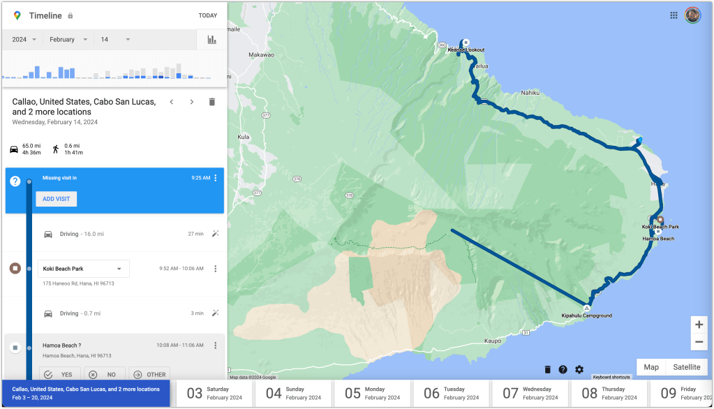 Finally got a reservation at Waiʻanapanapa State Park and some more exploring of the East Side of the Road to Hana and surrounding area. Lovely day filled with sights, driving and hiking.