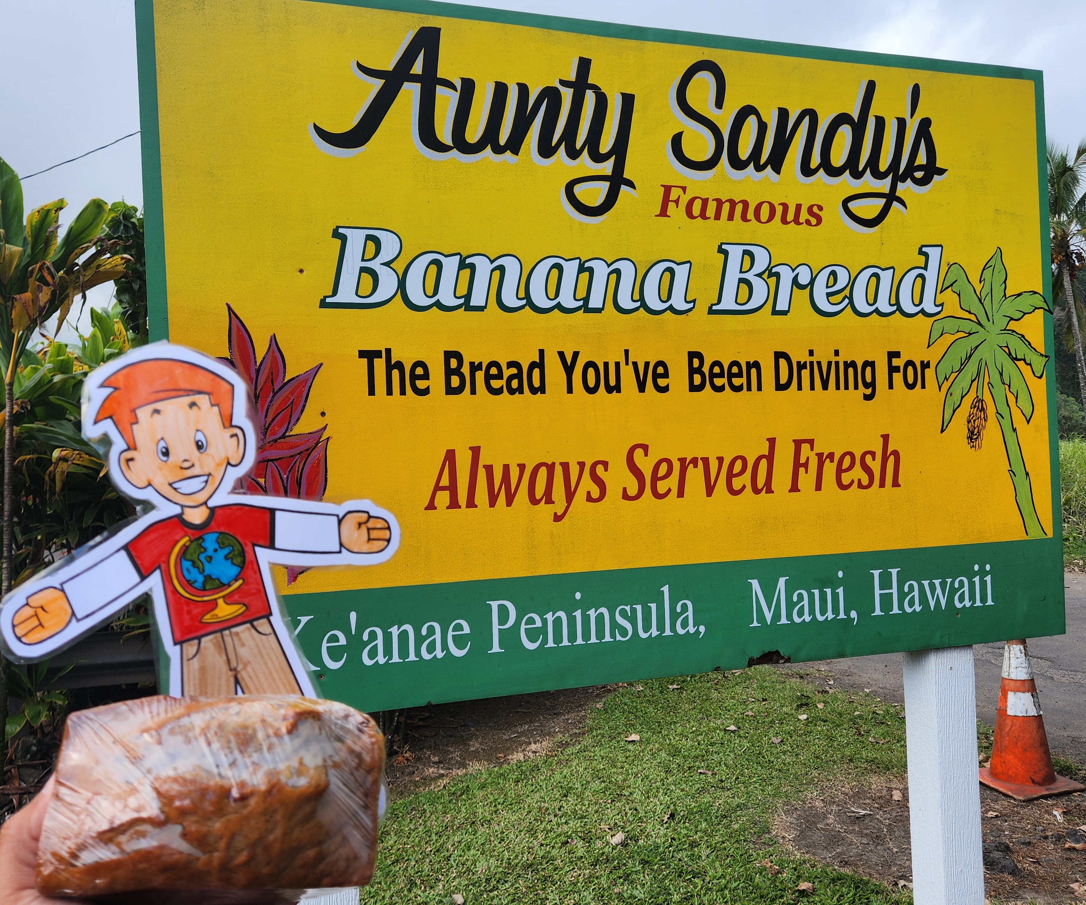 Stopped for some famous banana bread at Auntie Sandy’s. Also ended up with one of the biggest chili cheese dogs I’ve seen in my life.