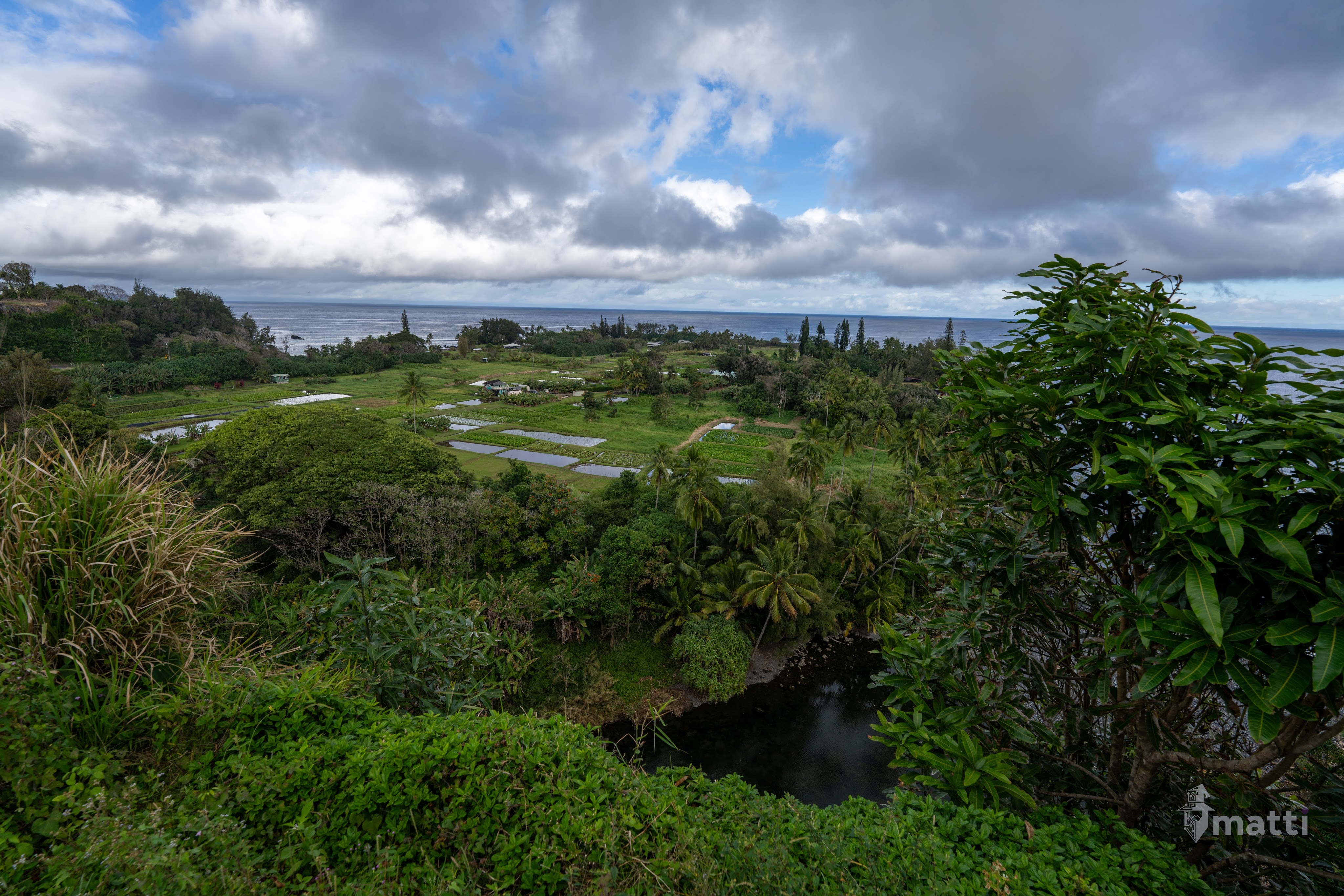 Stopped at the viewpoint to overlook Ke’anae from above and look at the taro fields for a bit. Bird was fishing in one of the ponds in the morning as well.