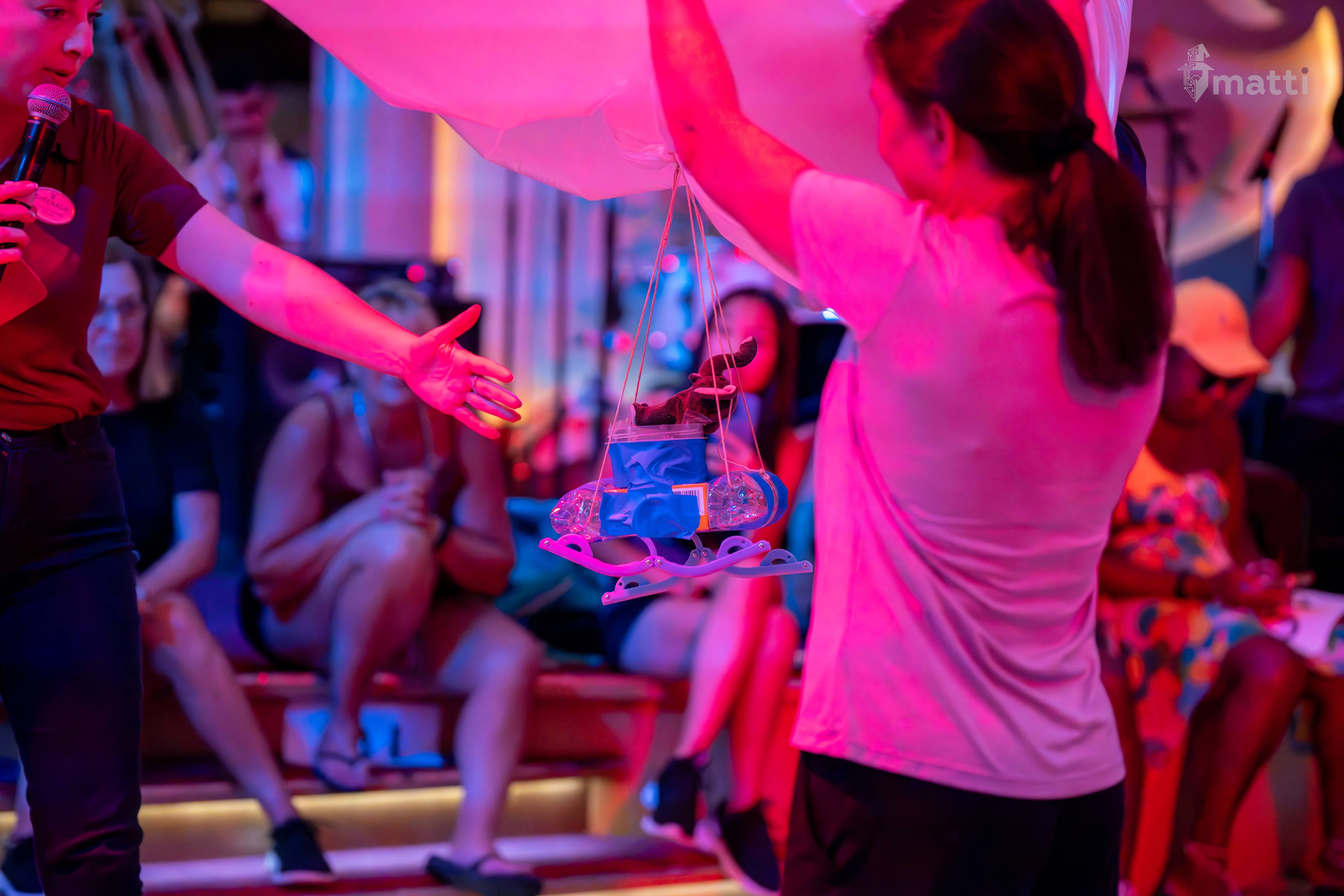 After bible study, headed to the egg drop to find mom, and take some photos for her. I had ZERO faith in her design, and somehow, miraculously, her egg survived. Not sure why they insist on the awful pink led light in the centrum, but whatever.