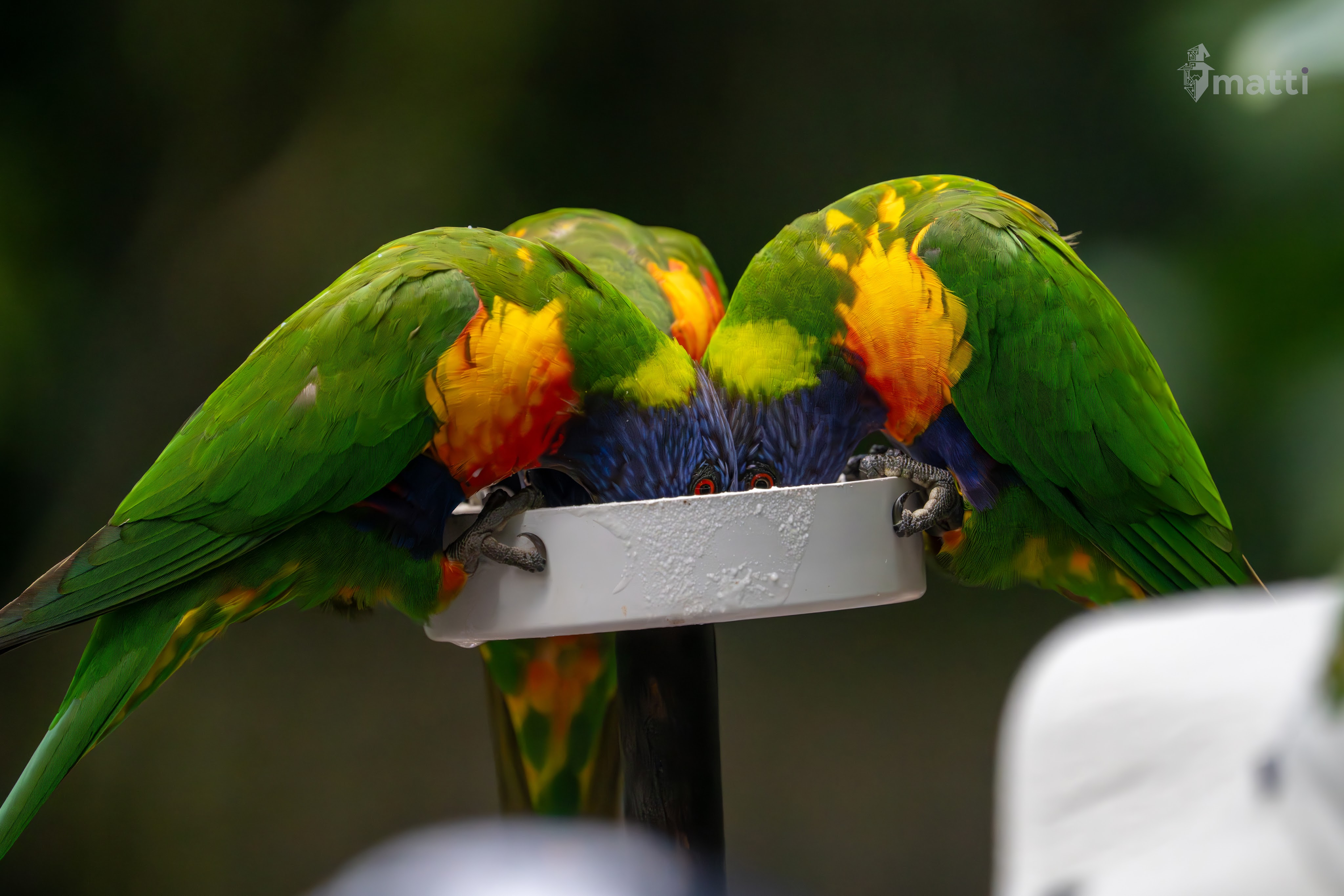 My koala encounter wasn’t for another hour, so I wandered around and ended up watching some wild lorikeets come down and get a little bit of a feast. Fascinating that they just know what time of the day it is and where to go to get some (milk?).
