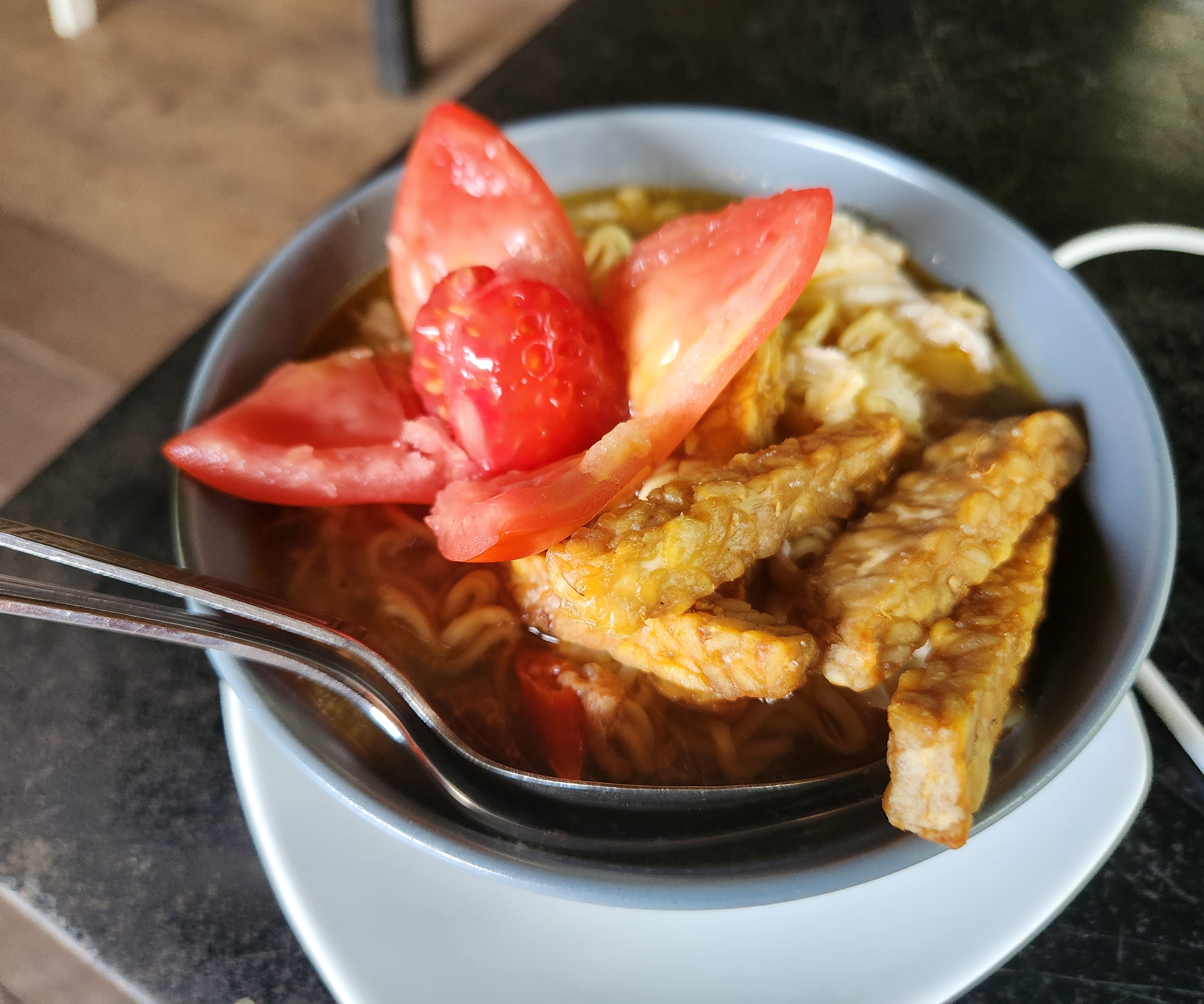 He insisted though, so I loaded onto the back with all the equipment, not having a handhold at all, and just trying not to lean back at all (lest I just fall back off the moped).