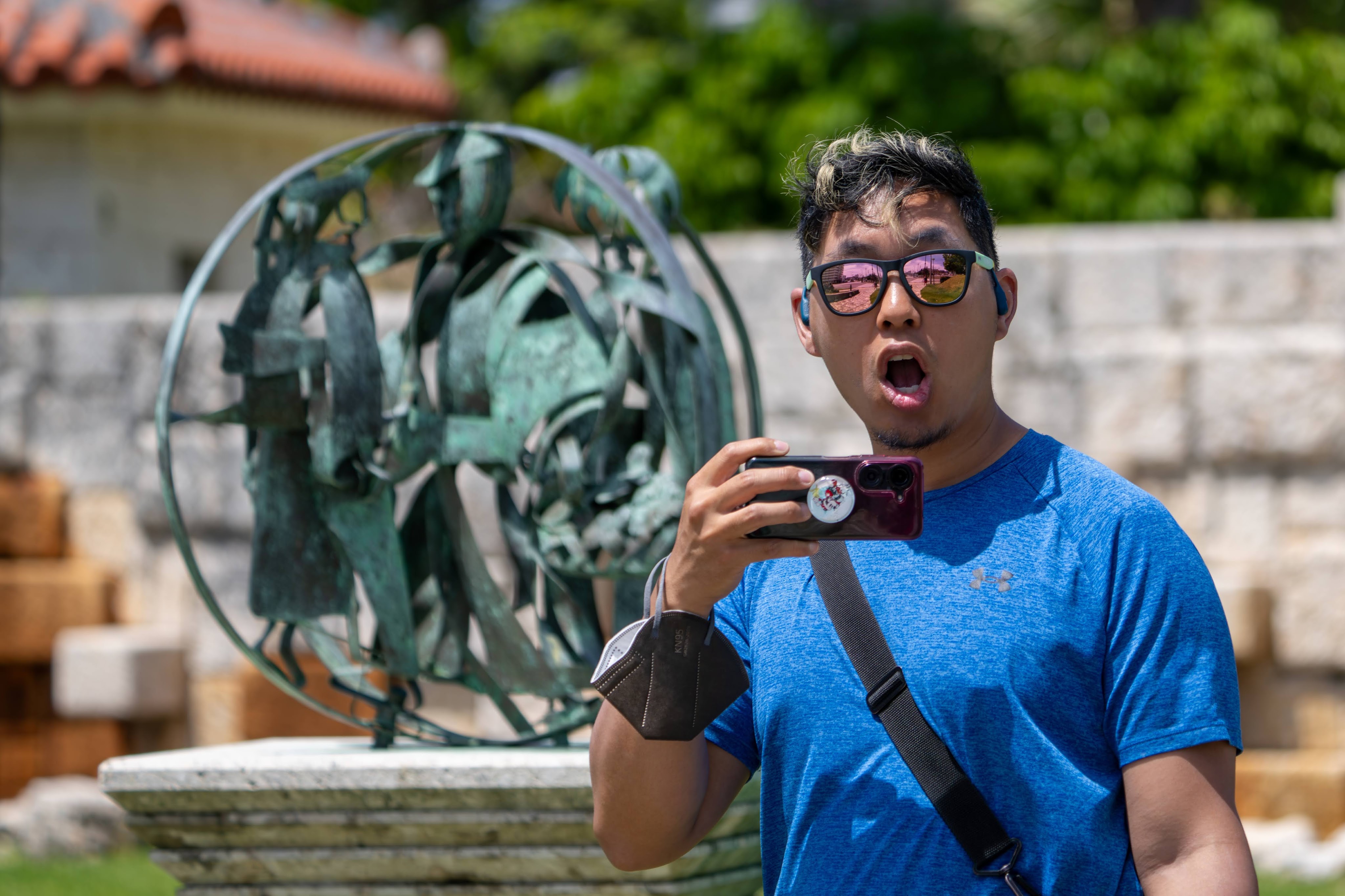 Found that there was not just the theatre, but also a nice little park and garden right outside, and spent a few minutes there. It was starting to get warm as well, so we took shelter for a bit inside the theatre.