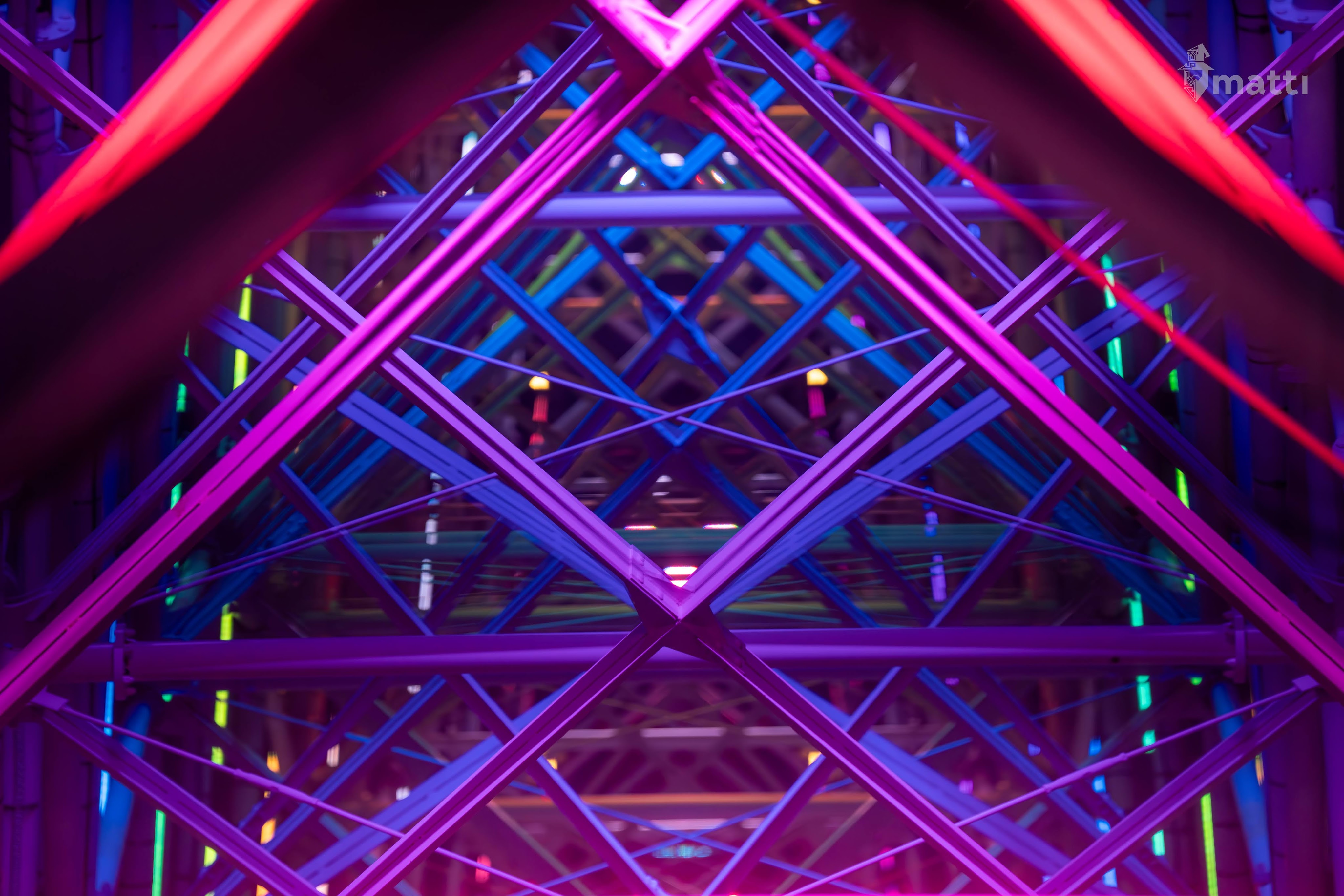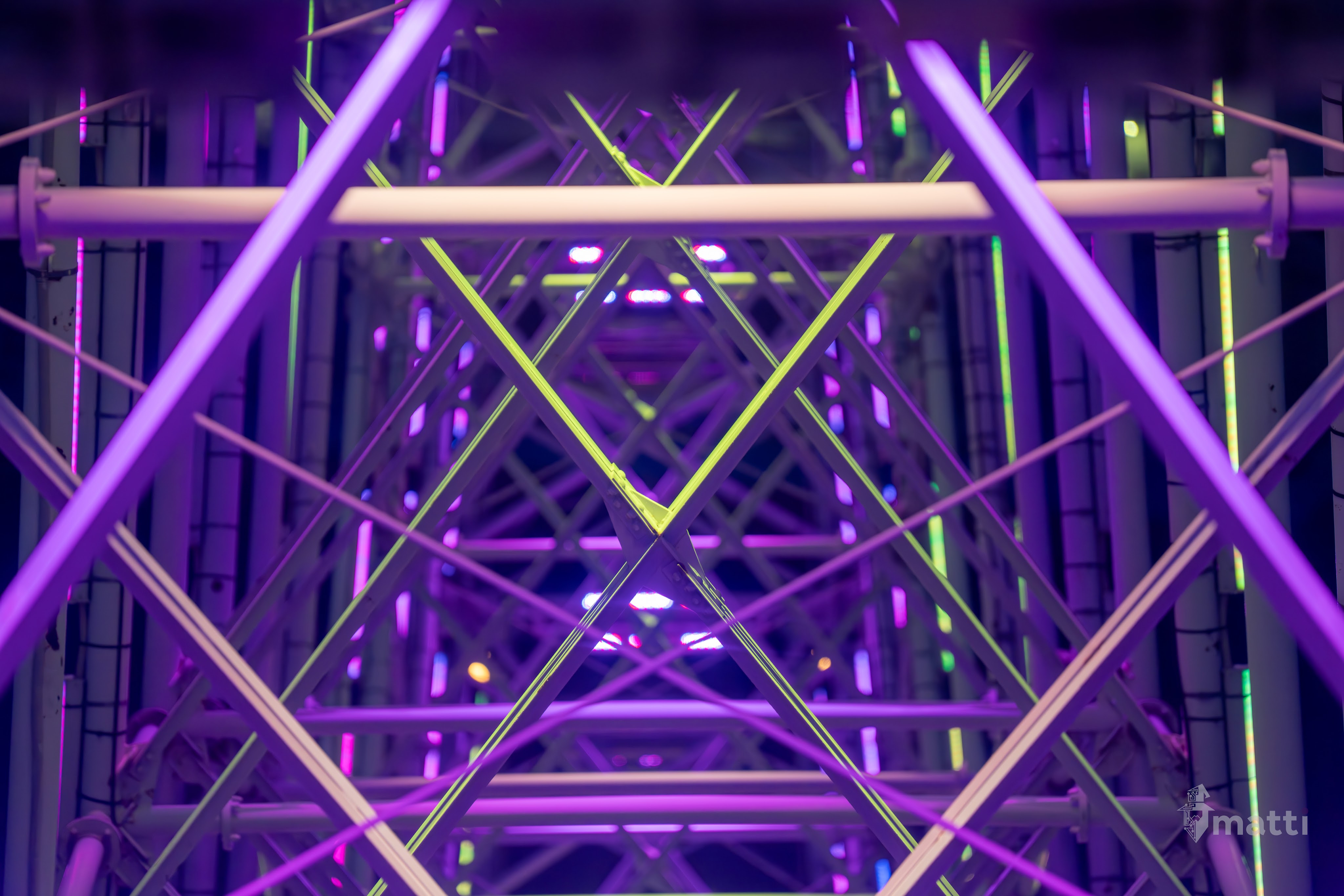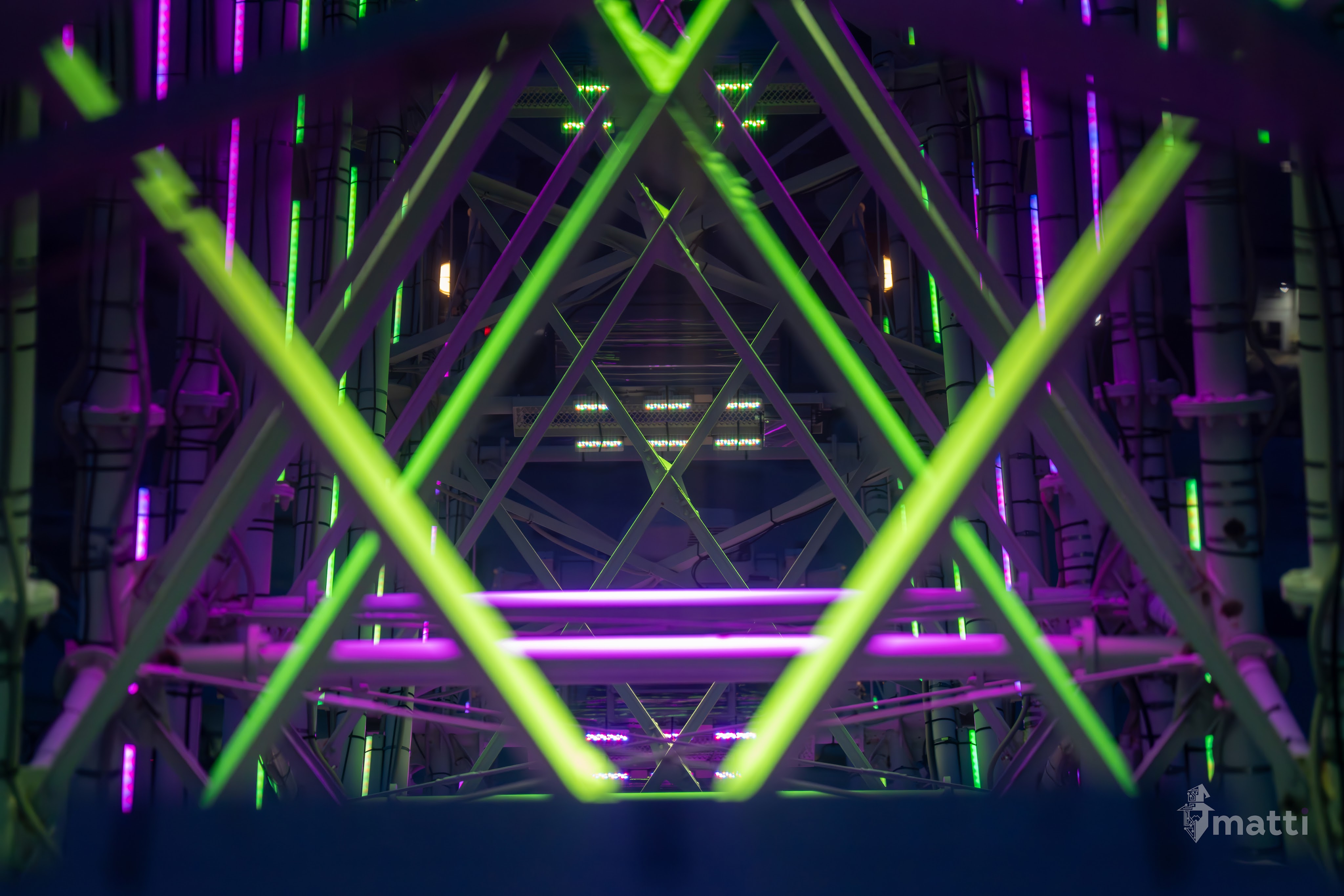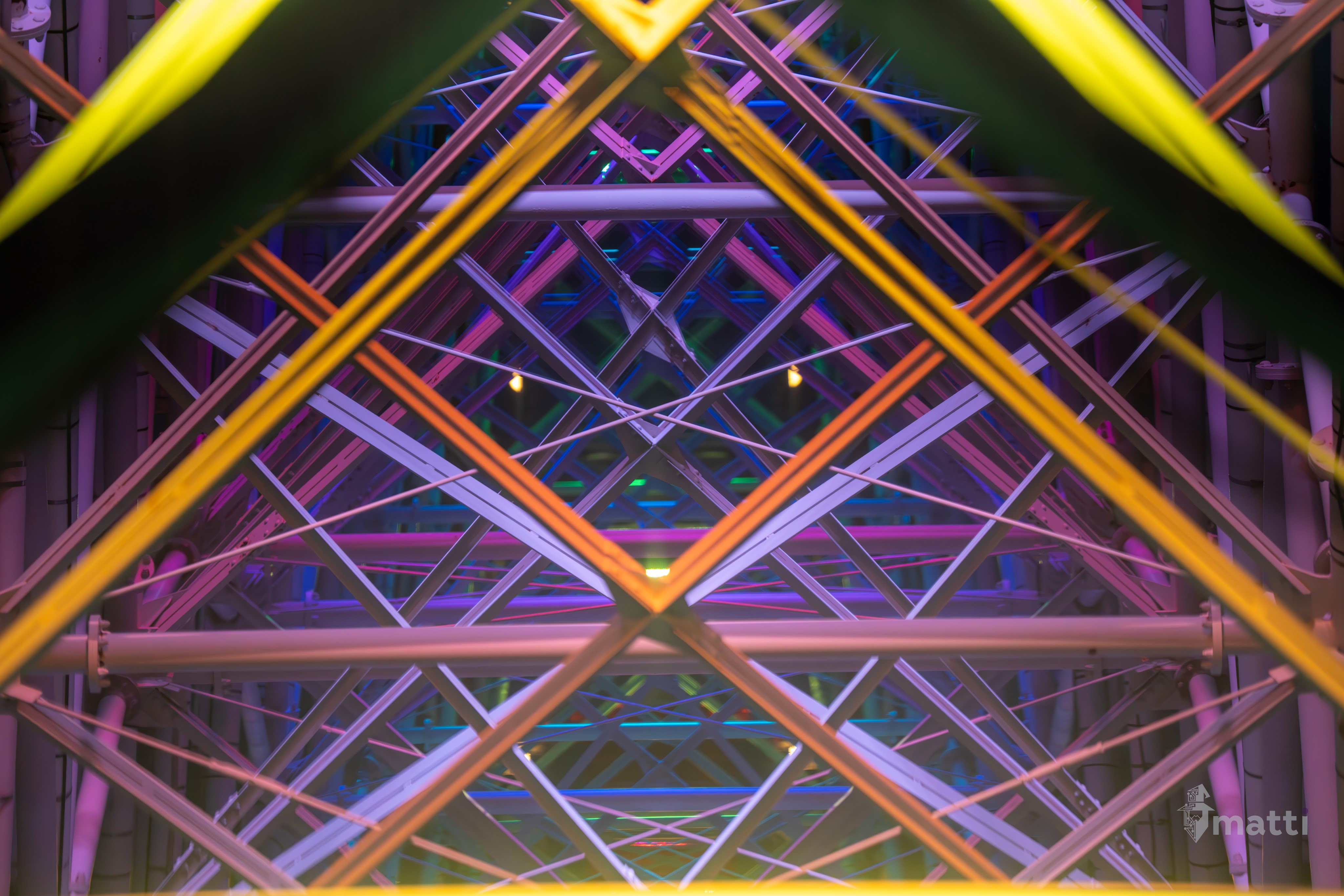Ended up distracting myself by taking photos from the view, and then really enjoying the lighted displays and getting some shots straight down the center with the different patterned lights and angles…really neat.