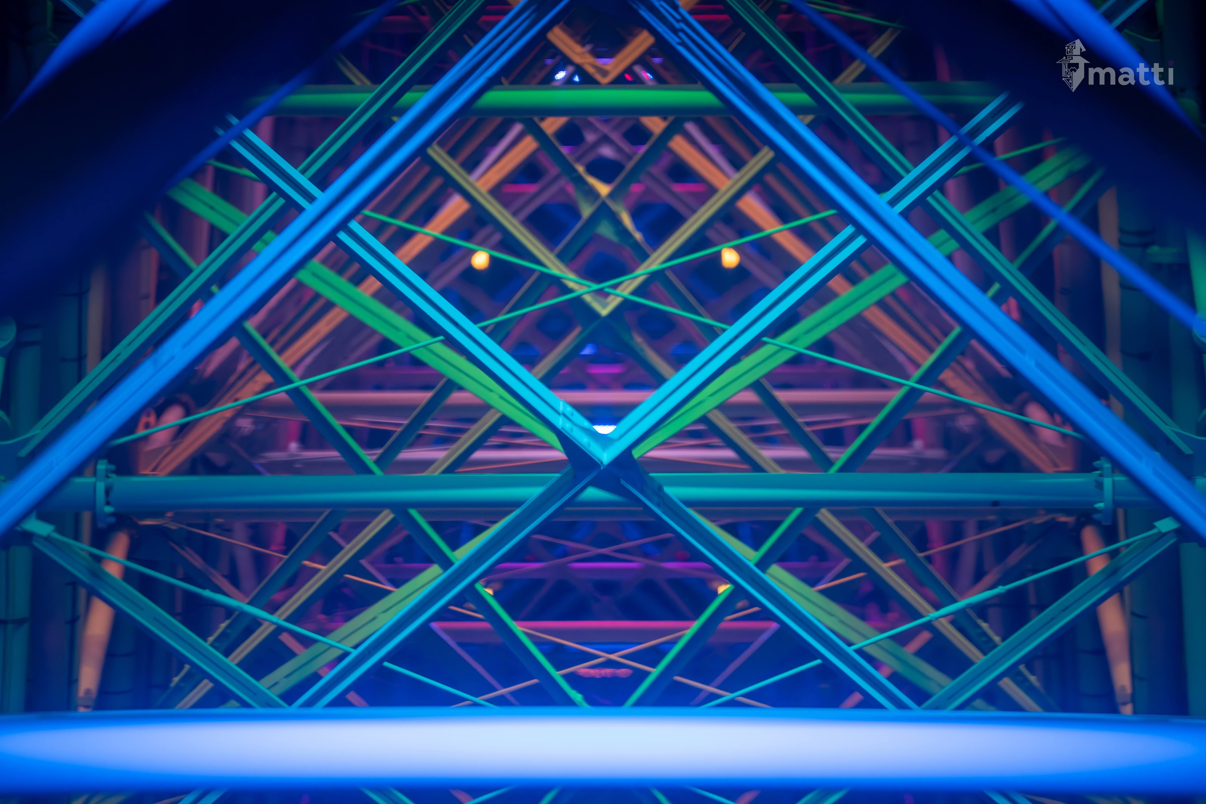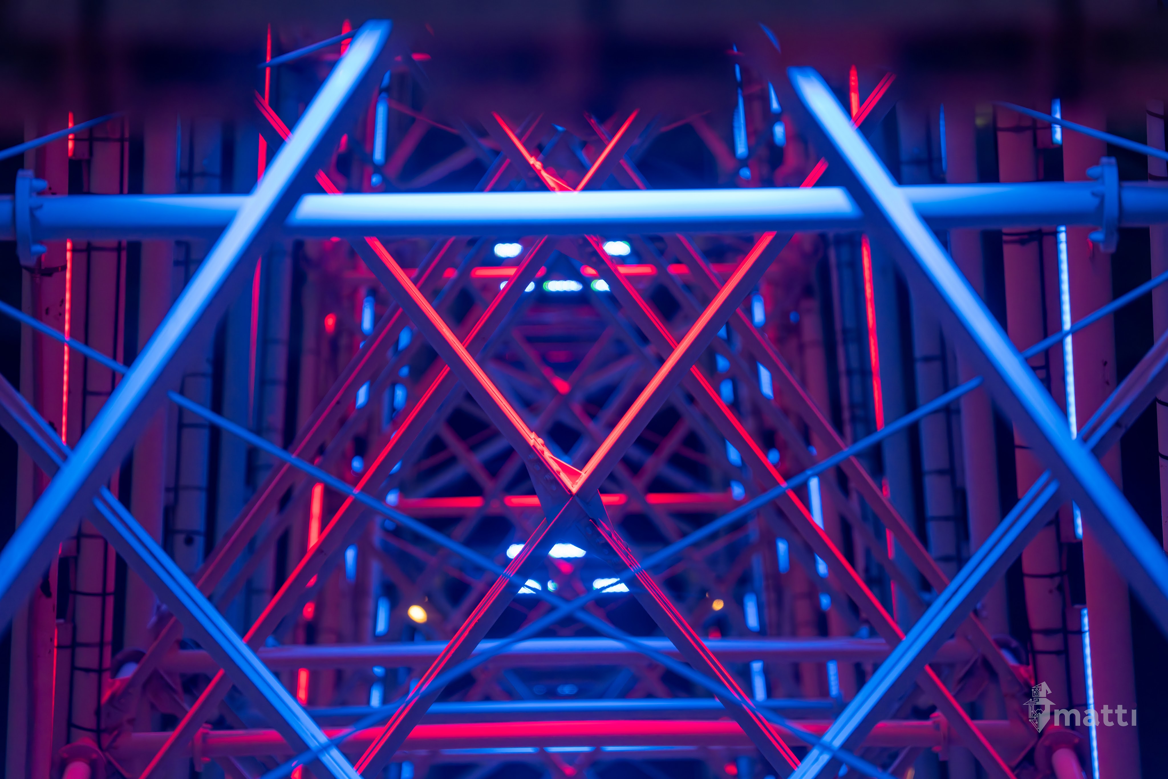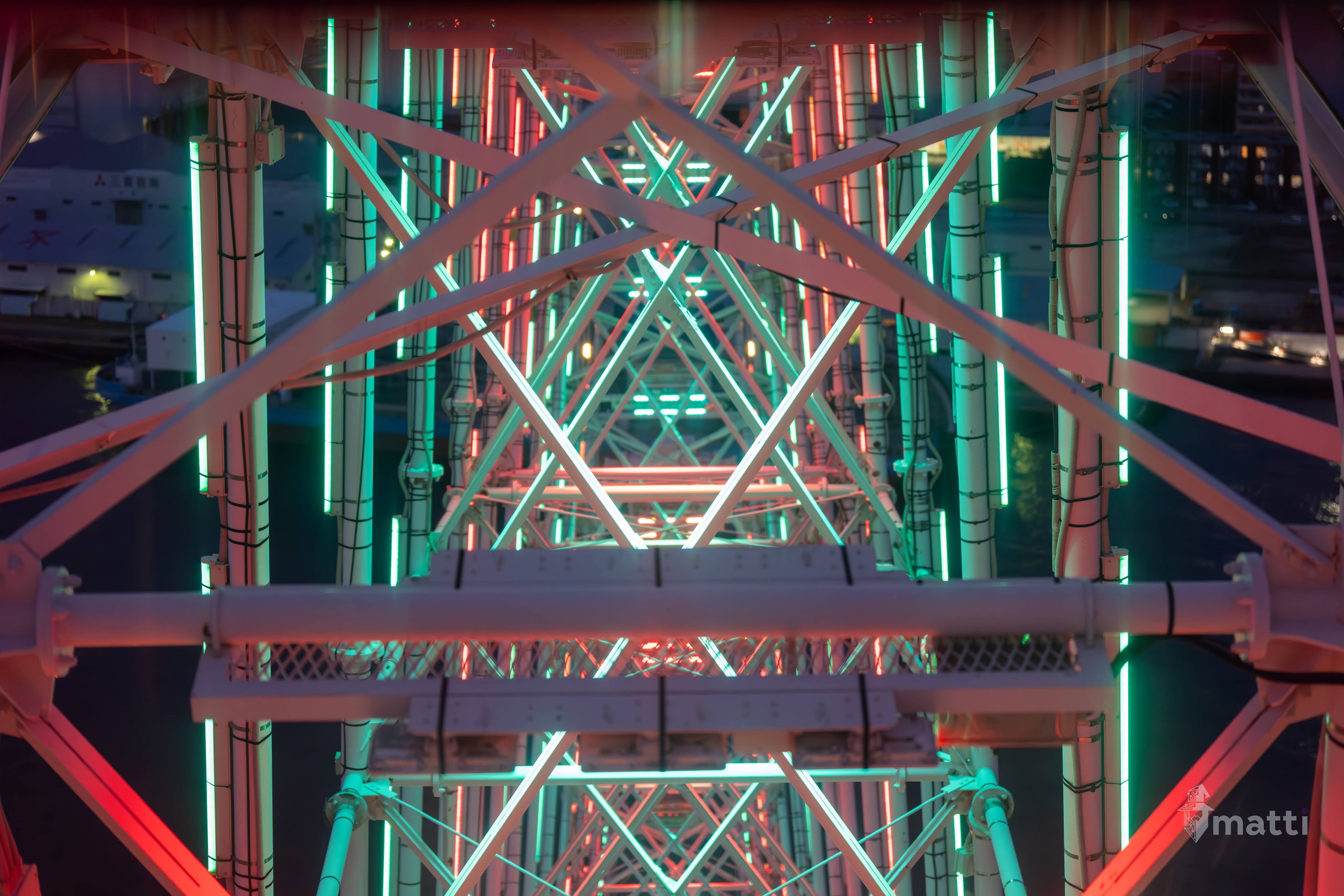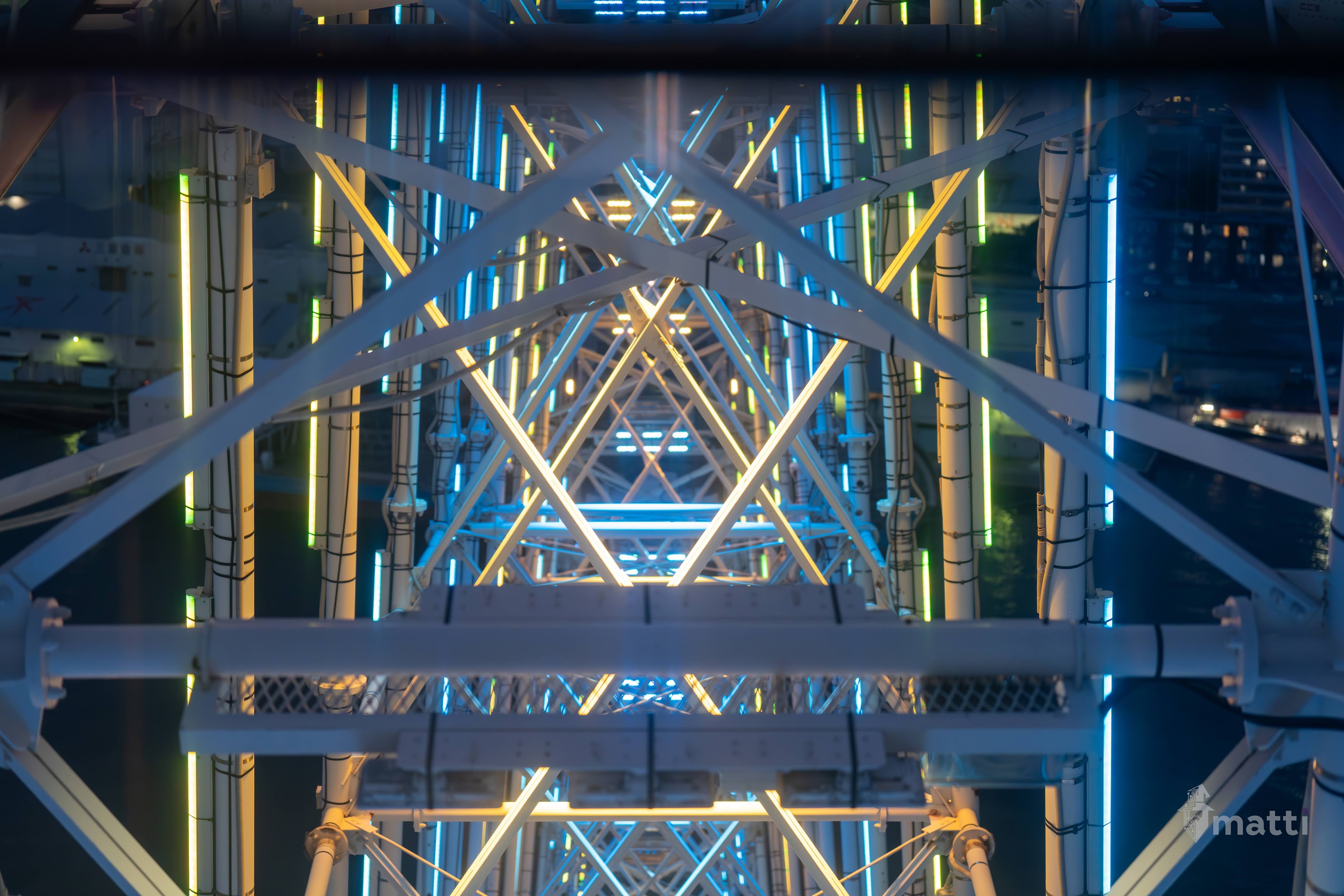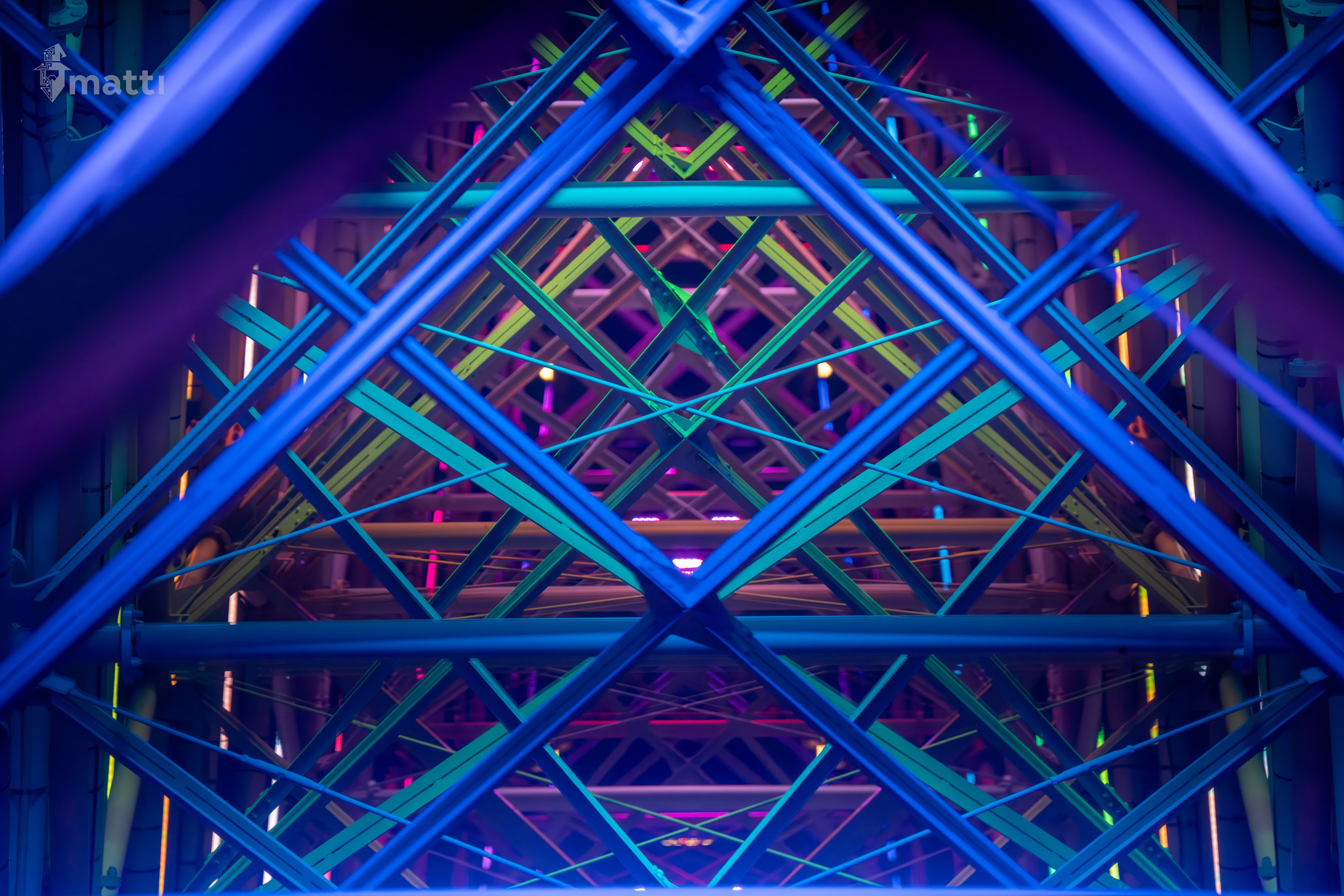 Ended up distracting myself by taking photos from the view, and then really enjoying the lighted displays and getting some shots straight down the center with the different patterned lights and angles…really neat.
