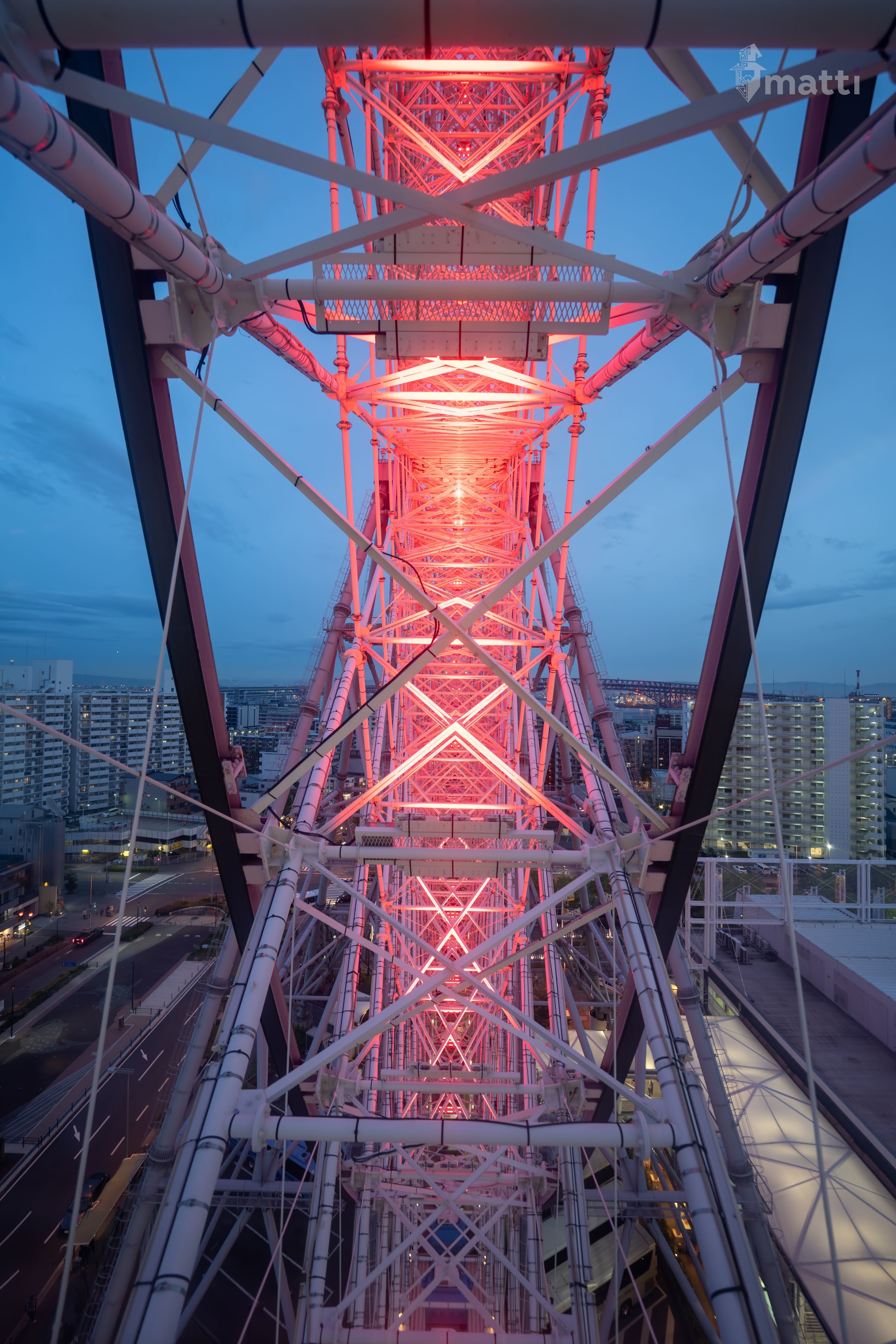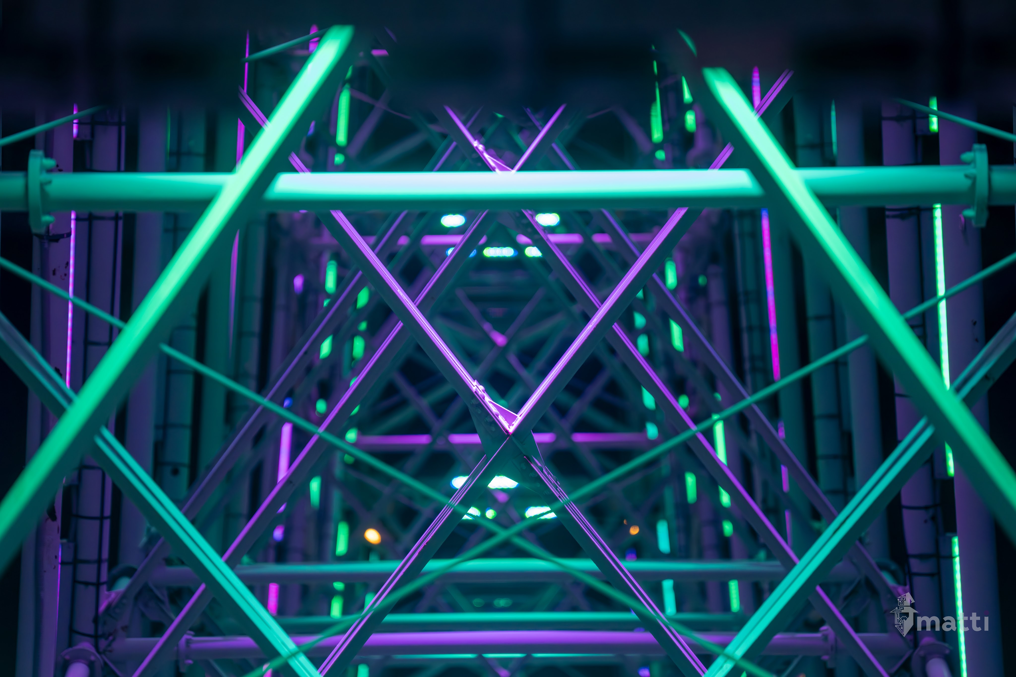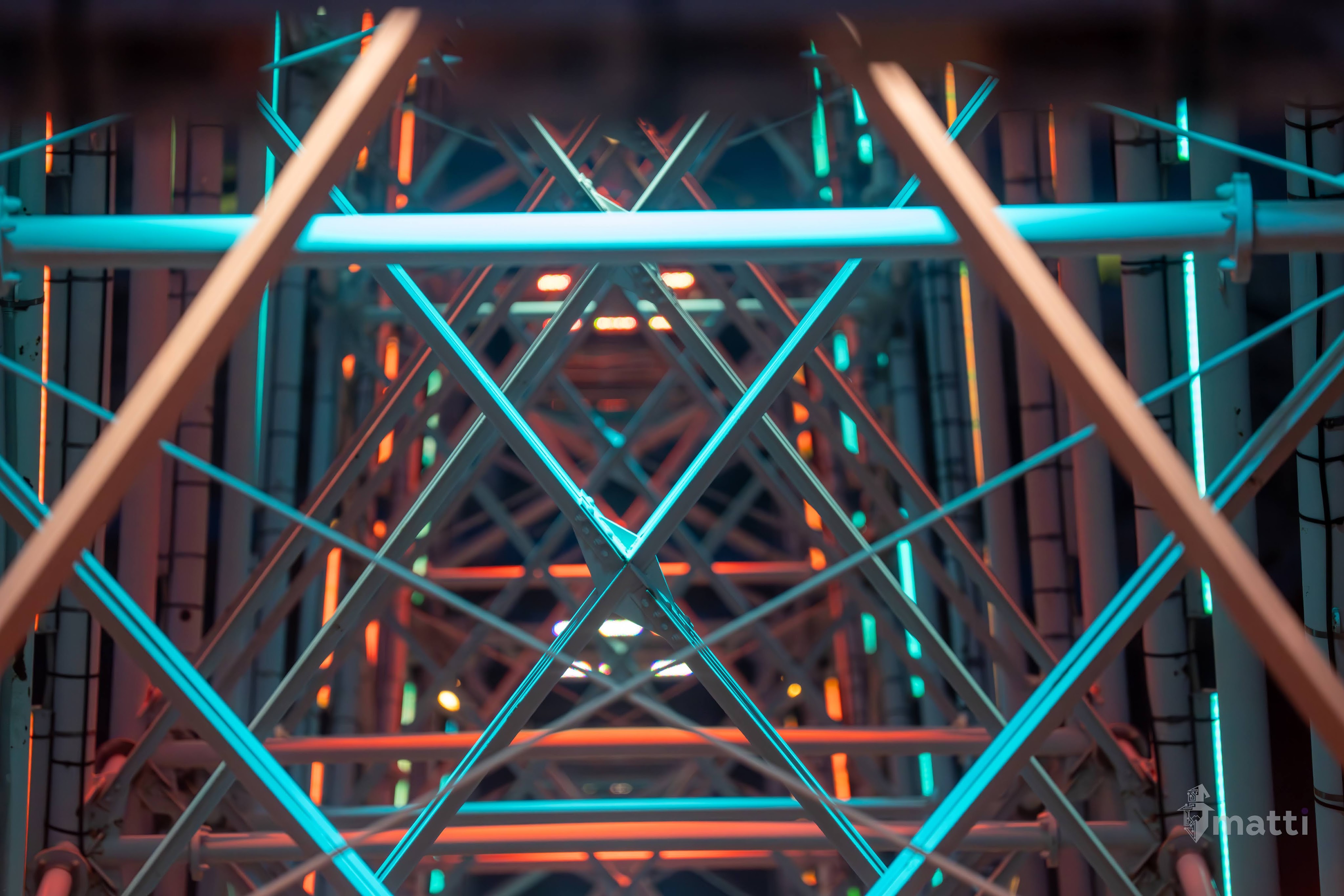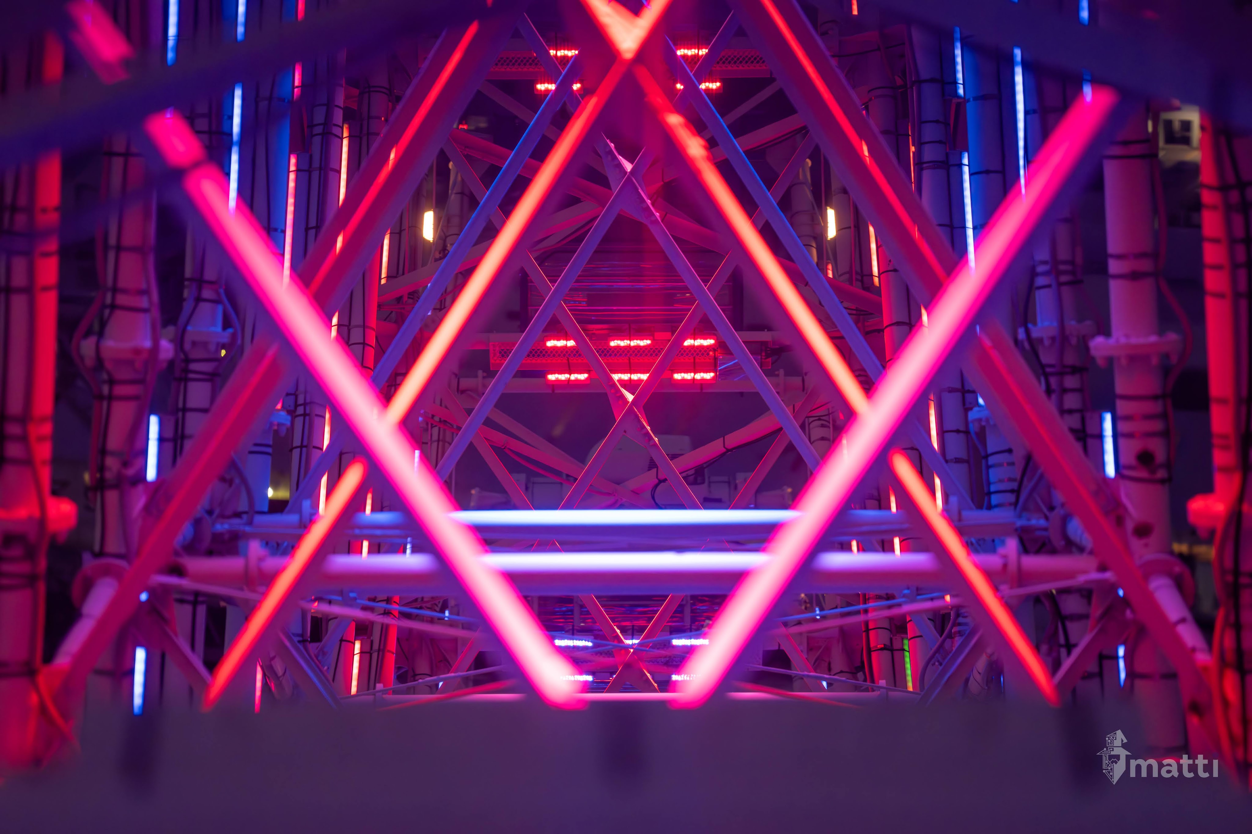 Ended up distracting myself by taking photos from the view, and then really enjoying the lighted displays and getting some shots straight down the center with the different patterned lights and angles…really neat.